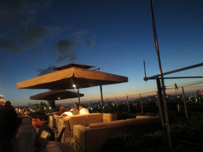 案内されたテーブルに座りますと福岡市内の展望が広がり遠く福岡ドームまで見渡せる素晴らしい場所です。ちょうど夕陽が博多湾に沈み黄金に包まれた福岡市でもありました。