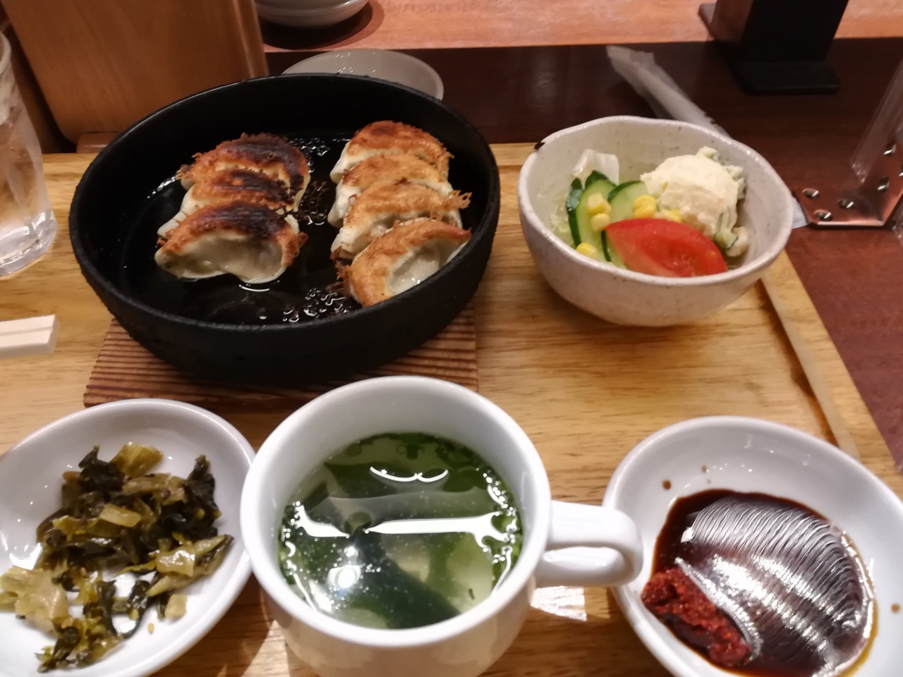 以前から通りかかるたびに気になっていたので来店。餃子のお店という事で、男性ばかりかなーと思いながら入ったが、わりと女性客も... 続きを読む多く、女性でも気軽に入店できる。この日は友人と一緒だったが、カウンターに座ることを選択。餃子10個にスープ、サラダ、ご飯、高菜がついた中州セットと、餃子6個に焼きそば、スープ、サラダ、ご飯、高菜がついたS天文館セットをそれぞれ注文。しばらくすると、先にわかめスープとサラダ、高菜がきて、その後わりとすぐに餃子とご飯がくるという流れ。サラダはポテトか野菜から選ぶことができ、ご飯は大中小が選べる。ご飯は中サイズでも十分多いので、少食の人は小を注文することをおすすめする。餃子は薄皮でアツアツ。時間が経ってもそれなりに熱いので、はふはふしながらほうばる感じ。焼きそばはハーフサイズながらわりと多くてびっくり。イカやもやし、かまぼこ等の具材が入ってて、味は甘め。値段も1000円いかずに楽しめるので、また行きたいと思った。 閉じる