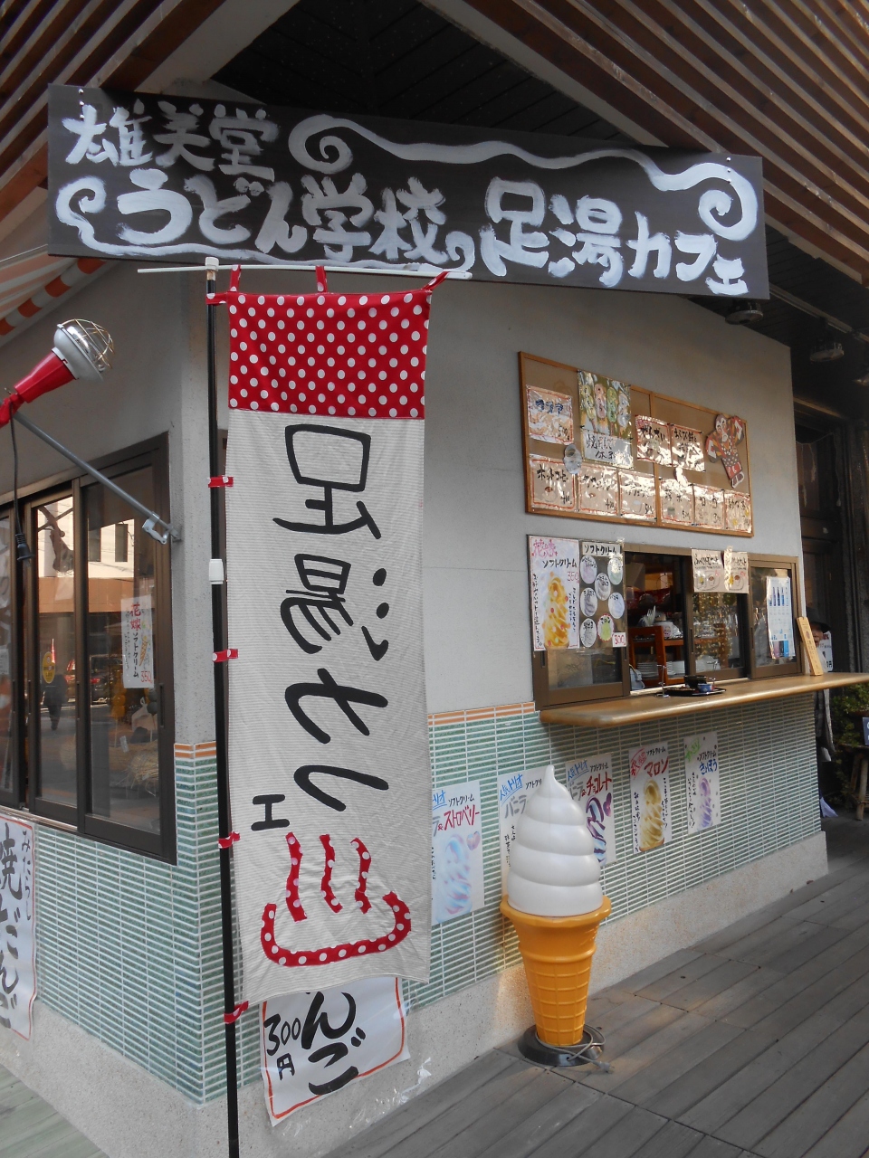 スイーツからうどんと美味しいものを食べながら、足湯を楽しめるカフェです。