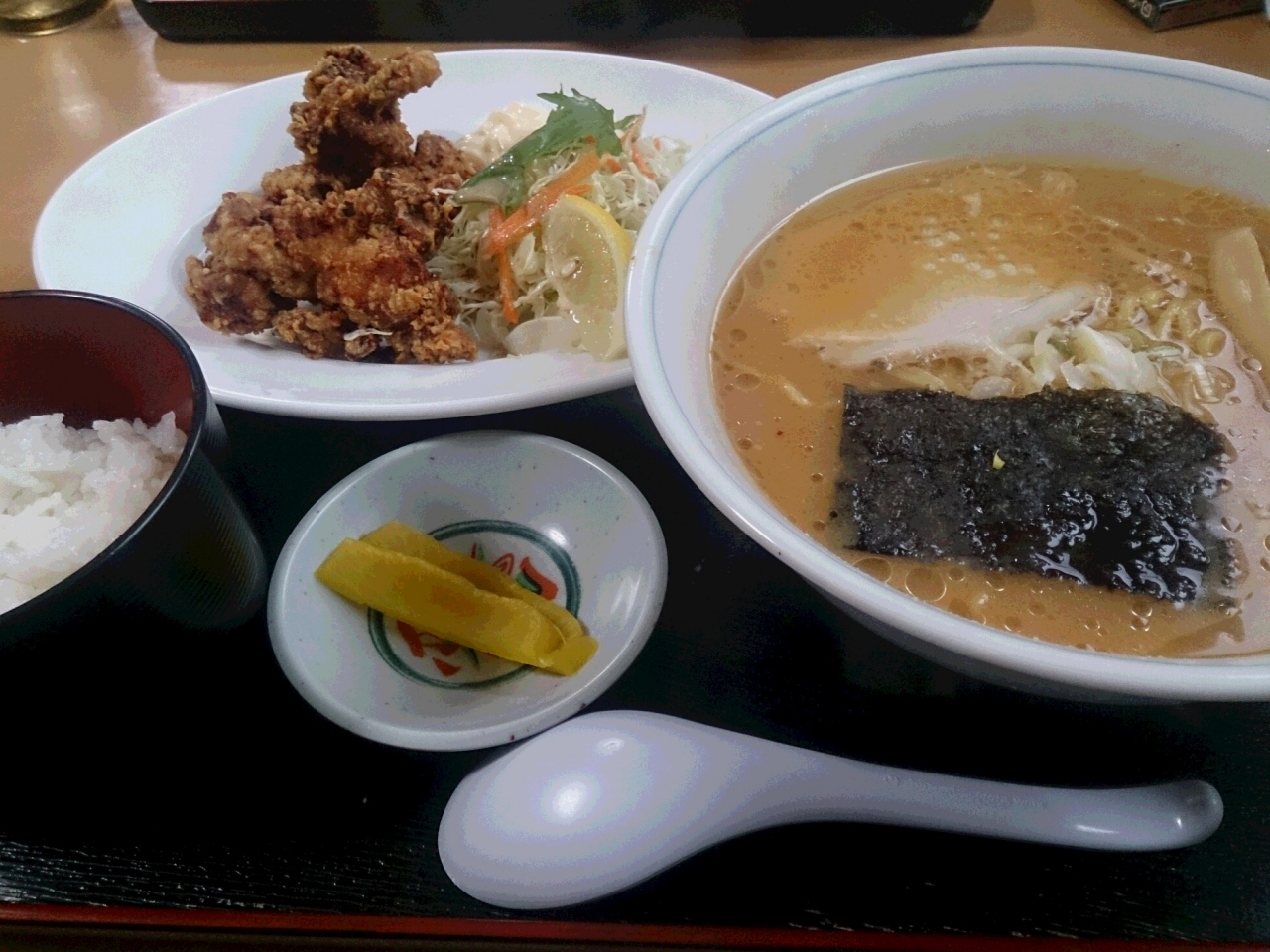 以前、苫小牧にあった佐藤軒。ここが無くなって久しくなりますが、復活していました。しかも、味もボリュームも昔のまま、いや、昔... 続きを読むよりパワーアップした気がしました。昔、お店をやっていた方のご友人という若いご夫婦が再開させました。この日は、から揚げとラーメンがついたラーメンセットDを注文。このボリュームです。量は多いですが、カラっと揚げたから揚げに、コクのあるラーメンの愛称が良く、飽きずに食べきれました。前の、ご主人は亡くなったとお聞きしましたが、若いご友人がこれだけ繁盛するお店をやってることを喜んでいると思います。何回も通いますので、頑張ってください。 閉じる