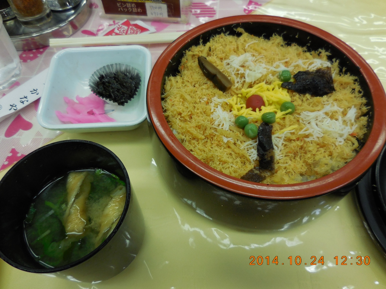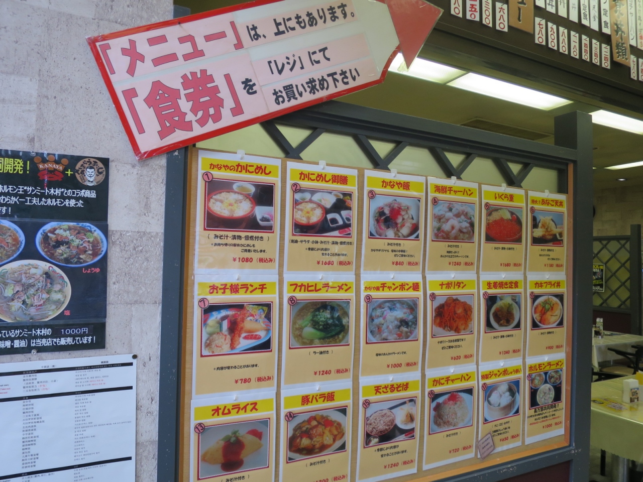 お店は観光バスの団体さんやらでごったがえしていて、食券機が壊れていて、受付で買うようになっていましたが・・・何故か 従業員さんがたくさんいて、カニ飯買いたいのですが、と言ってもちよっと待ってくださいと言われ、かなり待たされました・・・。