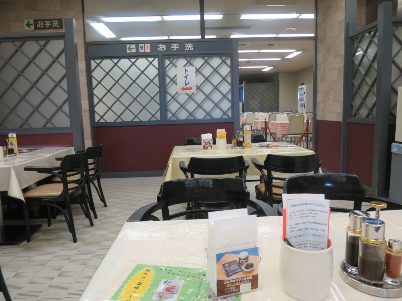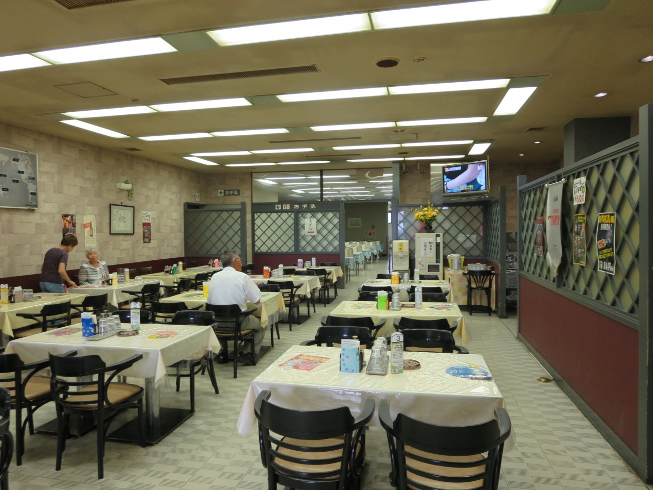 ドライブインは駅前の食堂がお座敷風なのに対し、テーブル席でくだけた感じです。