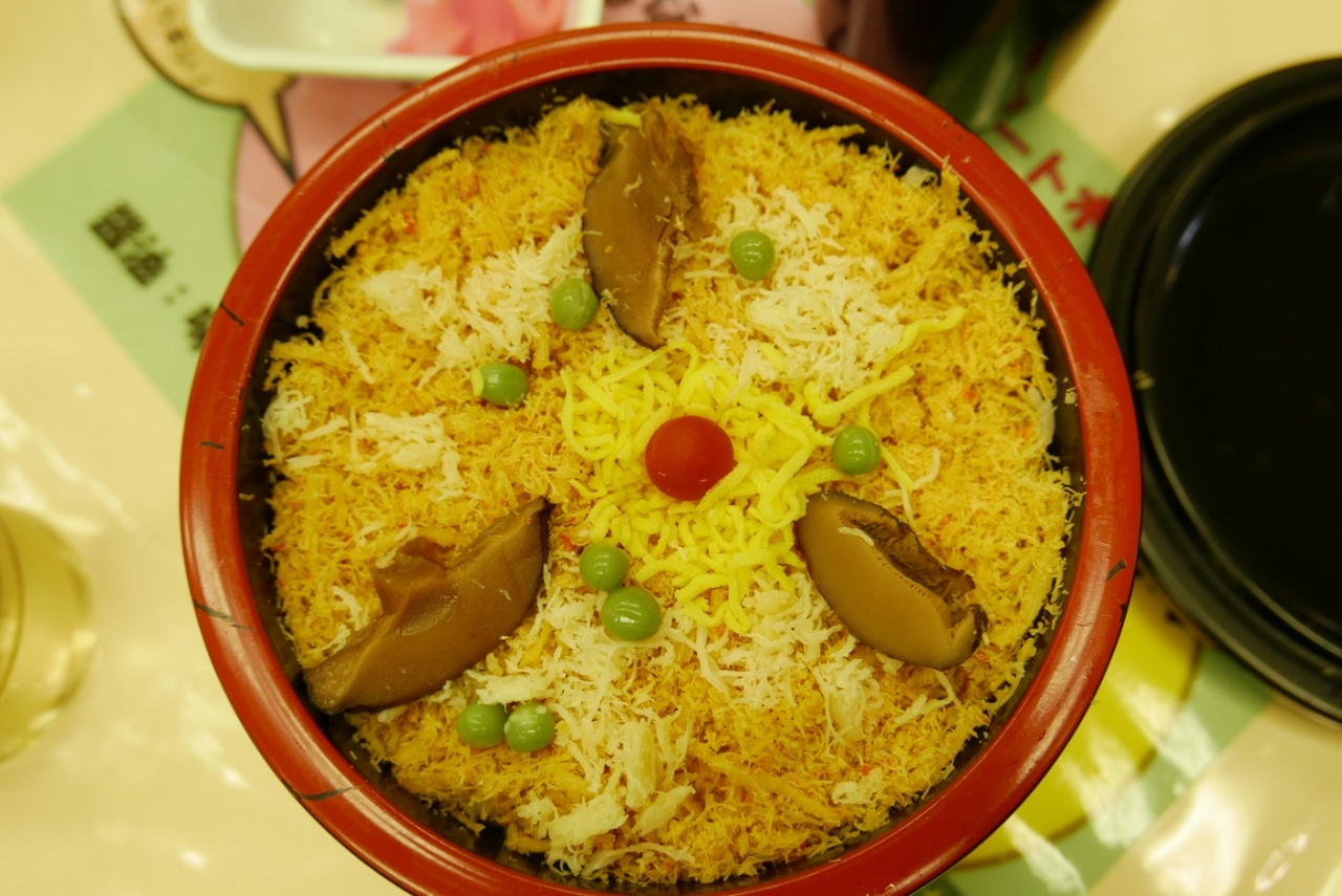 フレーク状にほぐされた蟹の身がたっぷりとご飯の上に盛られています。