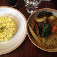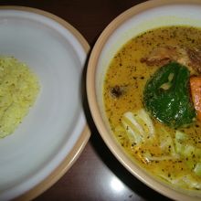 ライスはサフランかな?ターメリックかな?黄色の見た目も綺麗なライスです。