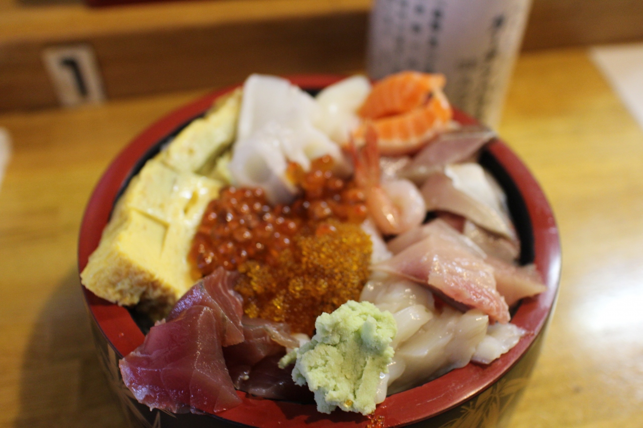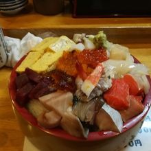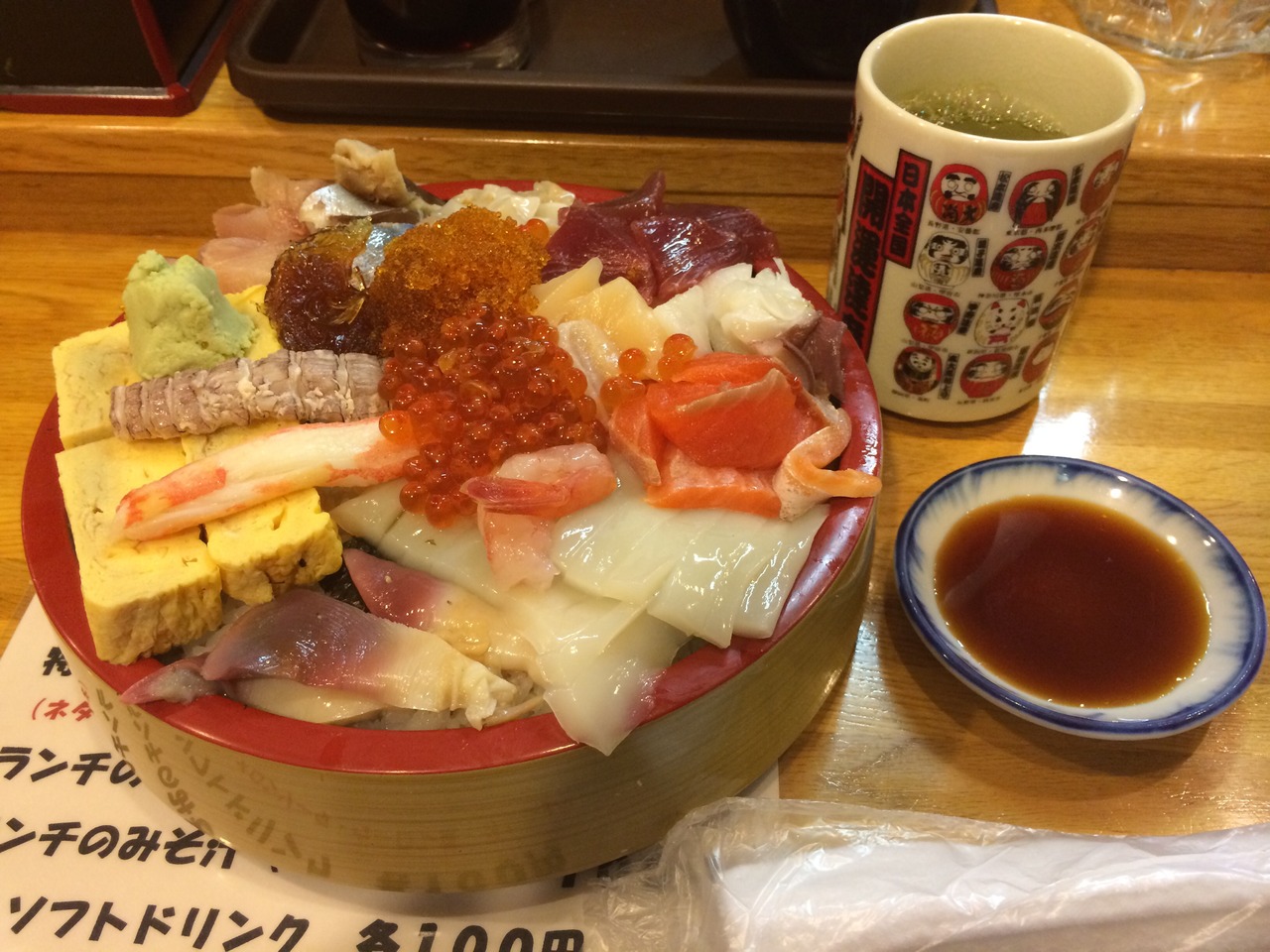 日曜の訪問だったので、お得なランチセットはなし。「まかないちらし」か「特大まかないちらし」で迷う。せっかくなので特大にしましたが、ご飯の量が3合くらいあるとのことで、ご飯の量を減らしてもらう。しかし、それでも1合半くらい。3合そのままであったら、なかなかすごいビジュアルになるかと。小ぶりにカットされたネタとご飯が寿司桶にこれでもかというくらい乗っていて、食べても食べても減らない。もちろん、味がいいので食べ飽きたりはしないが、途中からはかなり苦しくなってくる。結局、少しご飯を残してしまいました。ごめんなさい。