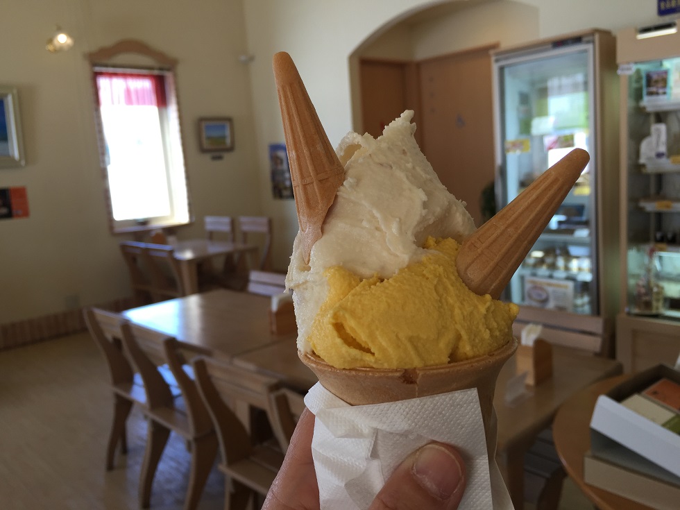 ソフトクリームは、カマンベールチーズ味一択で濃厚で甘いミルク(チーズ)風味でした。