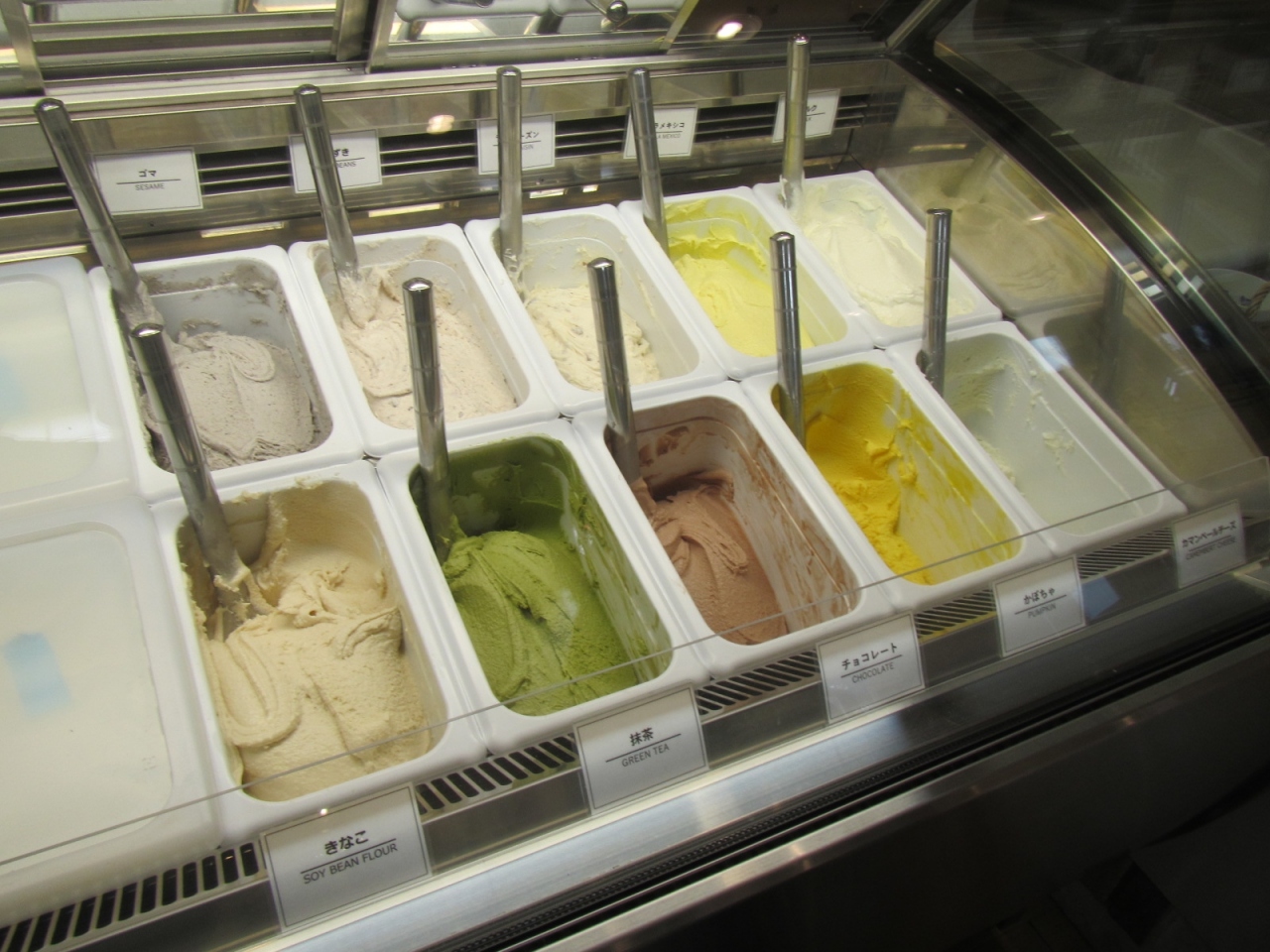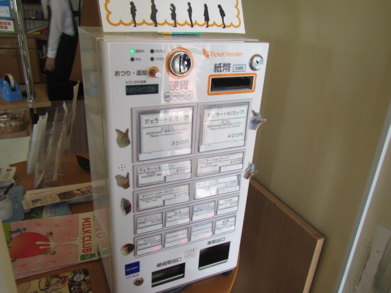 入口すぐに現金専用の券売機があり、ソフトクリームやジェラートはそこで食券を買って注文します。