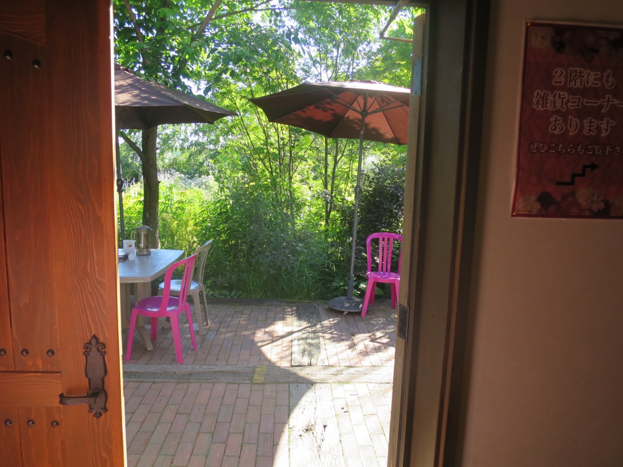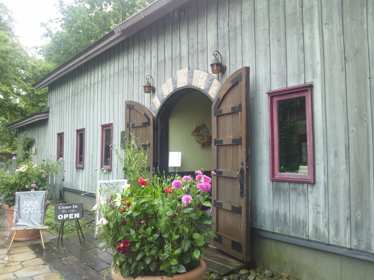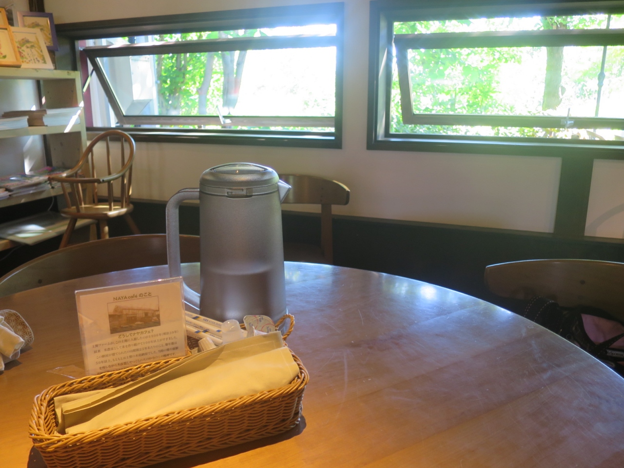 室内は納屋なので窓が小さく、少し暗めですが(照明は雰囲気を出して十分明るくなっています)、だからこそ窓から覗く緑が鮮やかで、入ってくる空気も新鮮です。