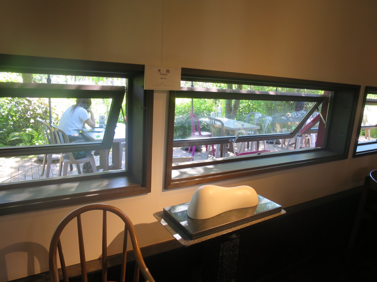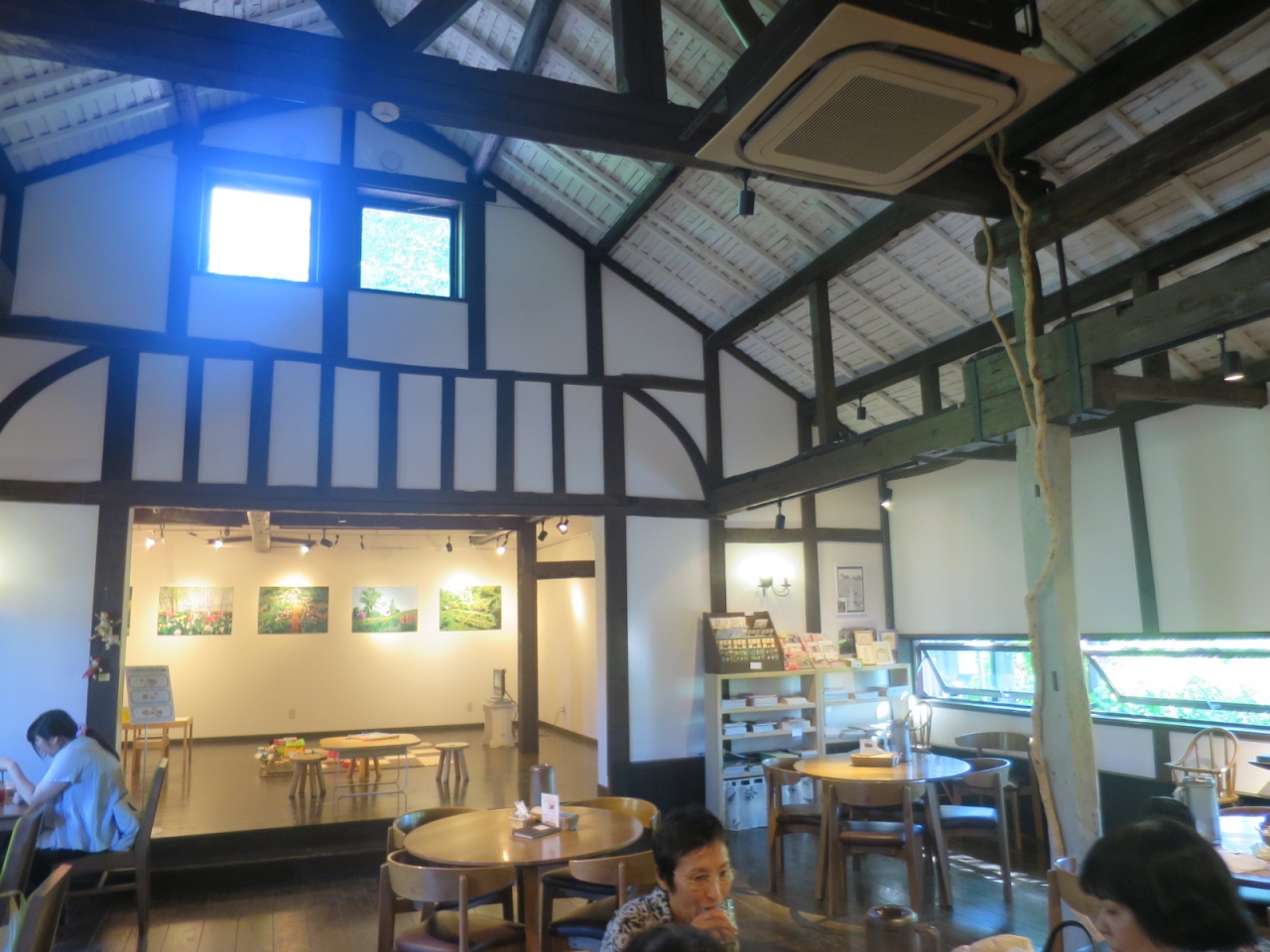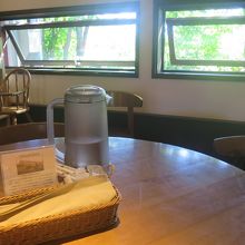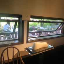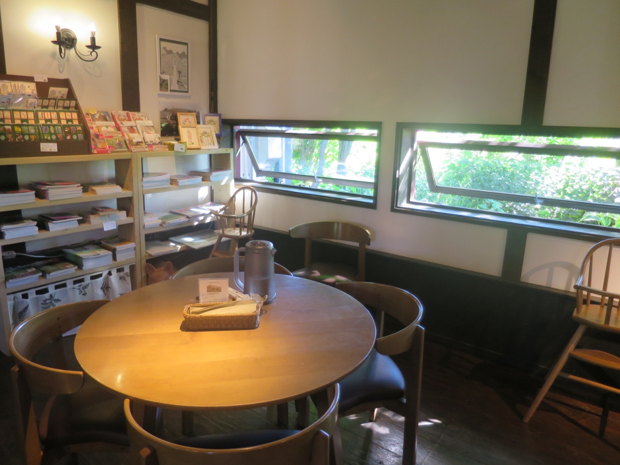 室内は納屋なので窓が小さく、少し暗めですが(照明は雰囲気を出して十分明るくなっています)、だからこそ窓から覗く緑が鮮やかで、入ってくる空気も新鮮です。
