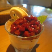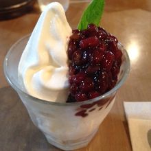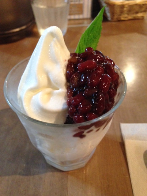 でも、これから昼食を取るのでここは我慢して十勝小豆サンデーをいただきました。