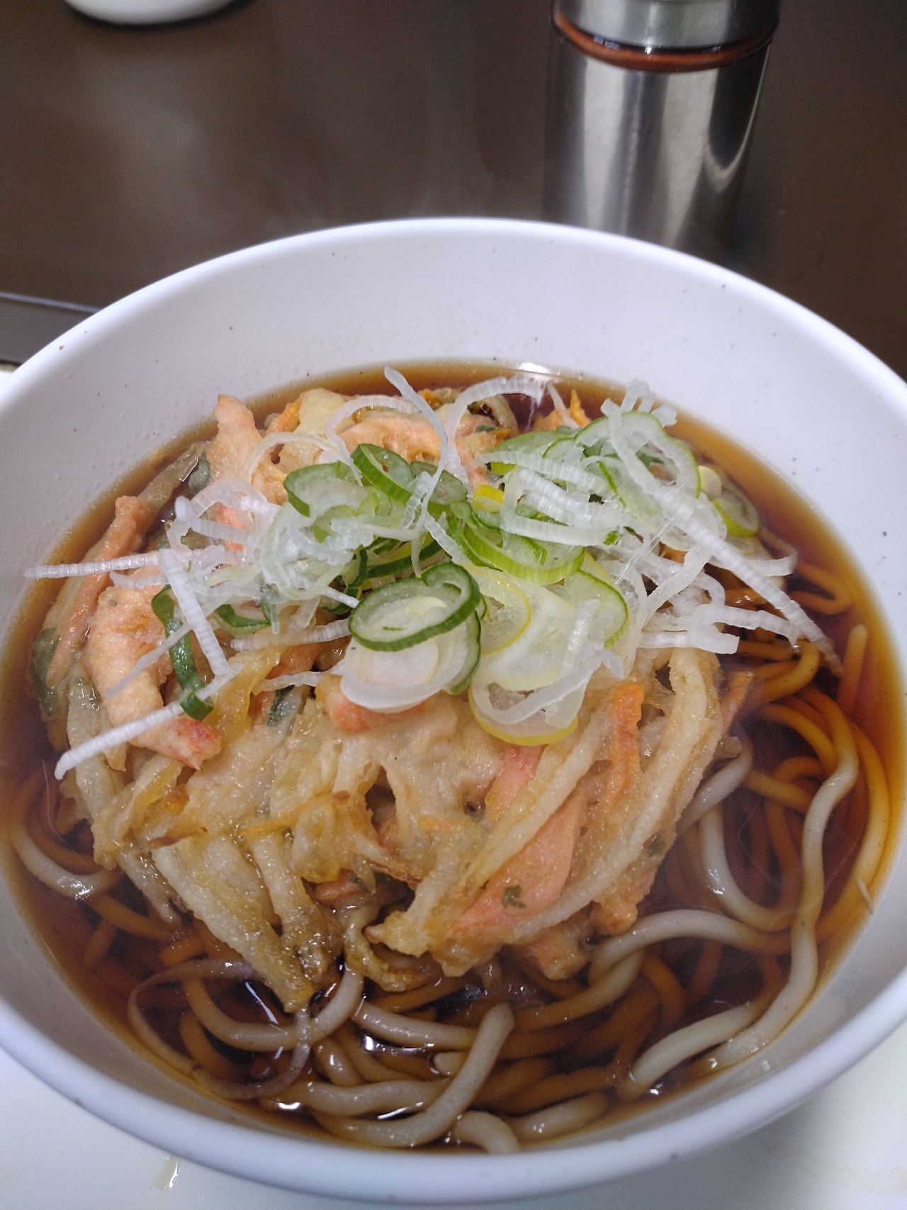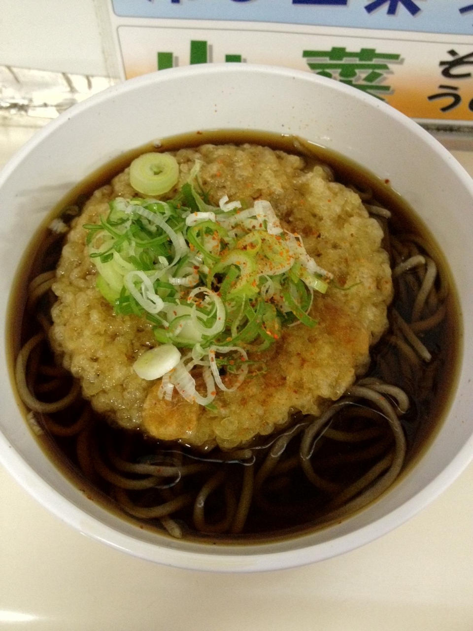 新千歳空港からエアポートで札幌駅に着きました。 お昼時にはまだまだ早いのですが、 これからの長距離移動の前に、食べてお... 続きを読むかないと 難民になりそうなので、ホームにある駅そばを 思いつき、訪問。 駅ホームに2カ所あるうちの7,8番ホームへ移動。 既にカウンターに数名の方が おりました。 食券機で購入し、 暫し出来るのを楽しみに待ちます。 なつかしぃーー感じのする天ぷらそば。 天ぷらにはしっかり小海老が3匹ほど ノッてます。 濃いめのつゆが身体に染みますね。 閉じる