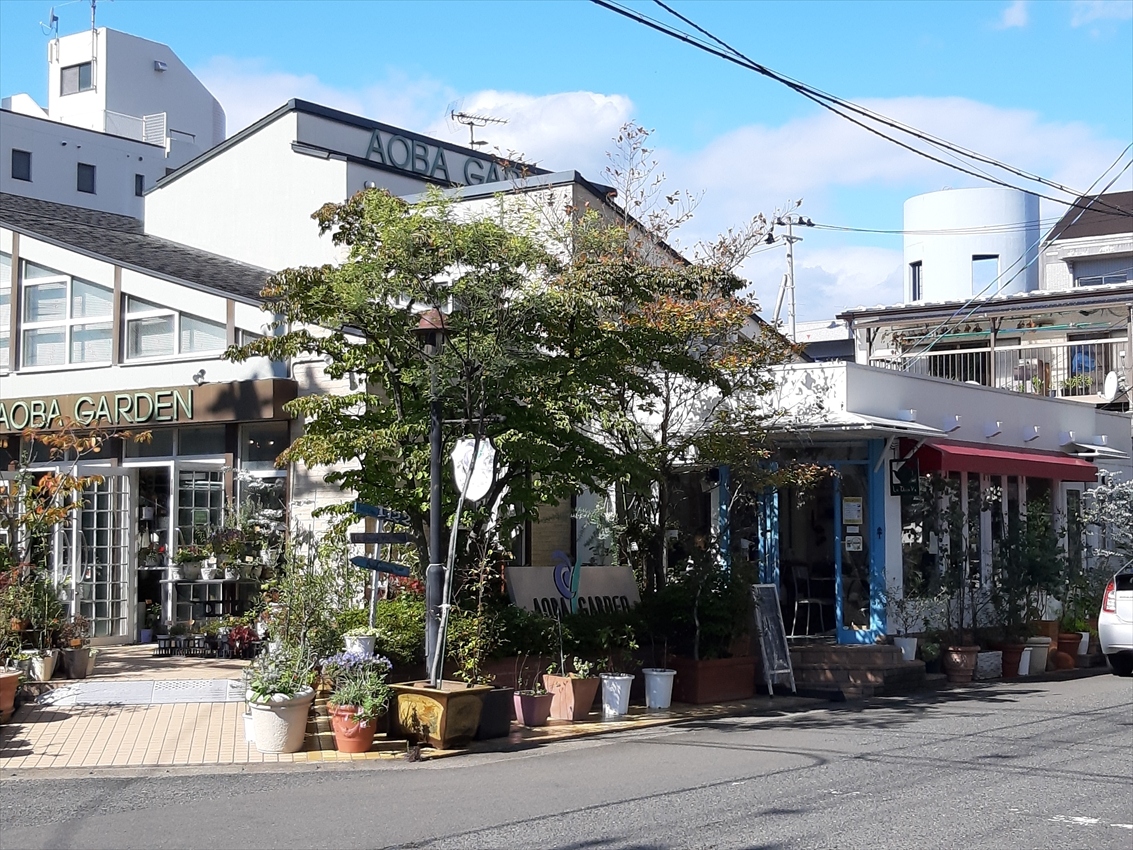 花屋さんと一緒になったお店で、外観は白壁+大きな窓で南欧風。
