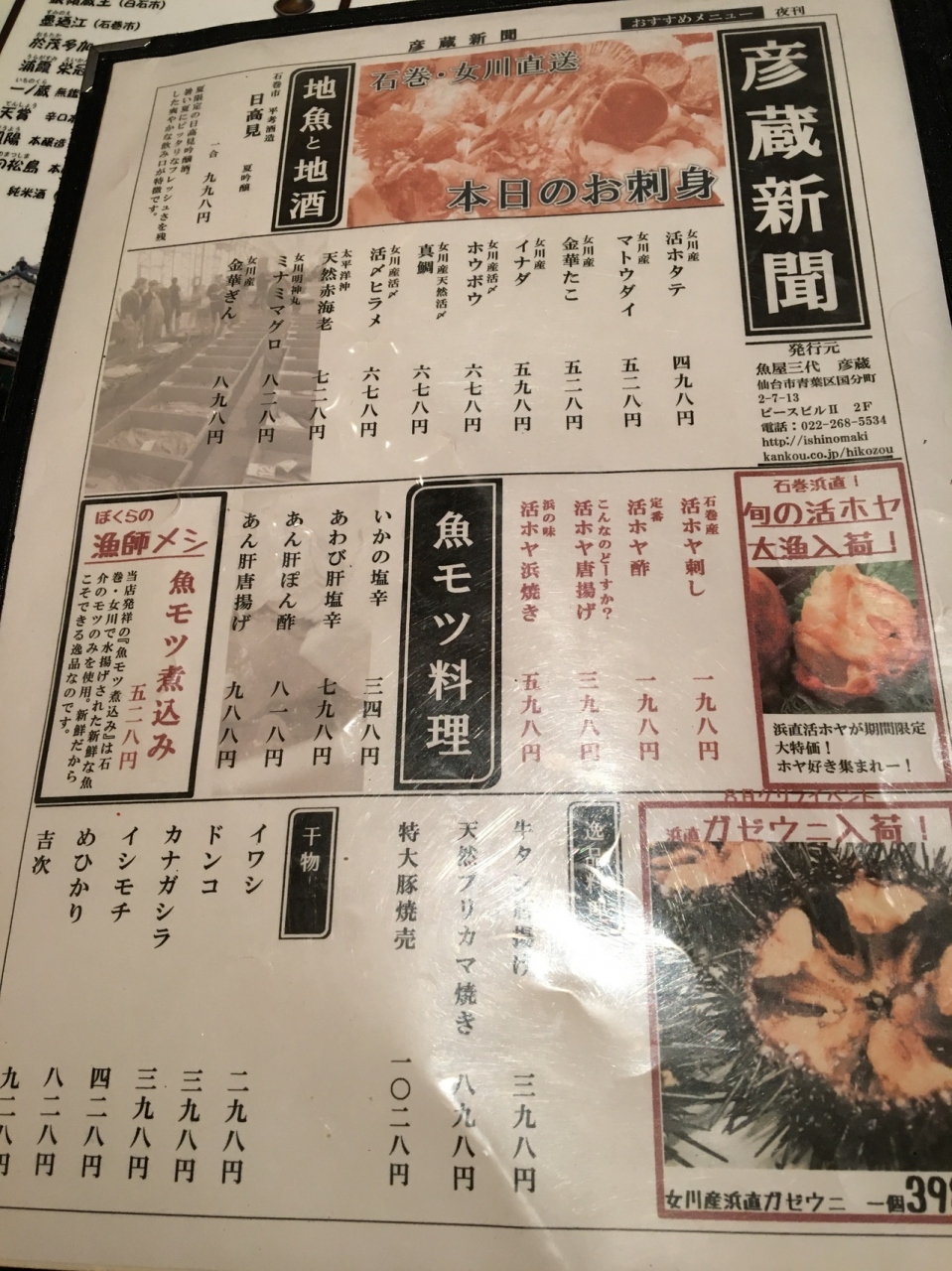 ホヤ三昧と地酒20種2時間飲み放題2980円