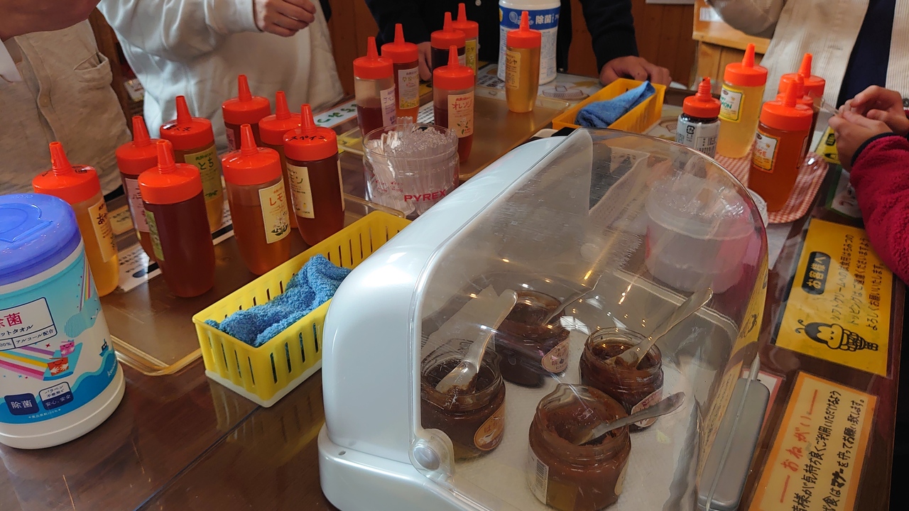 たくさんのはちみつがありますが、お菓子工房は休業中