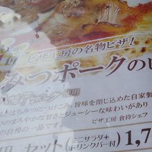 先にはちみつポークピザが到着。大きめに6つにカットされてましたがそこまでは生地は厚くなかったです。