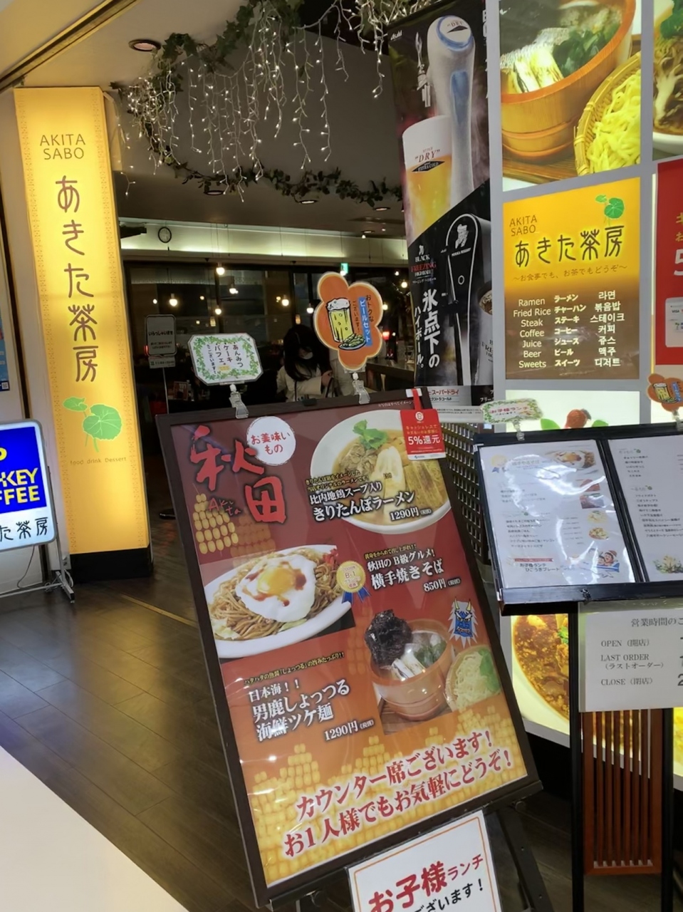 秋田空港のレストラン、県産品を使用したメニューもあり飛行機の待ち時間に。