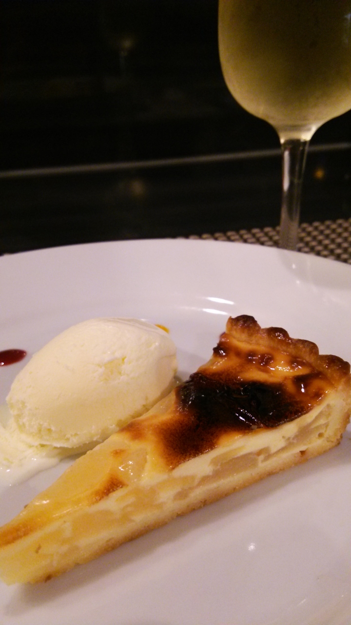 「夢プリン」後にもうひとつ、洋なしのタルトを白ワインと一緒にいただきました。バニラアイスが添えられており、こちらもとても美味しかったです。ホールサイズを予約してお持ち帰りするファンもいるそうです。