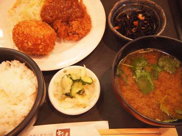 その名の通り、メインの皿にメンチカツとクリームコロッケが1個ずつ、刻みキャベツと共に盛られている。
