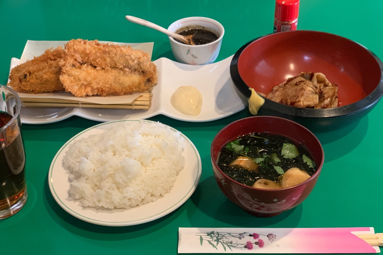 B定食 イワシフライ 豚ロースグリル