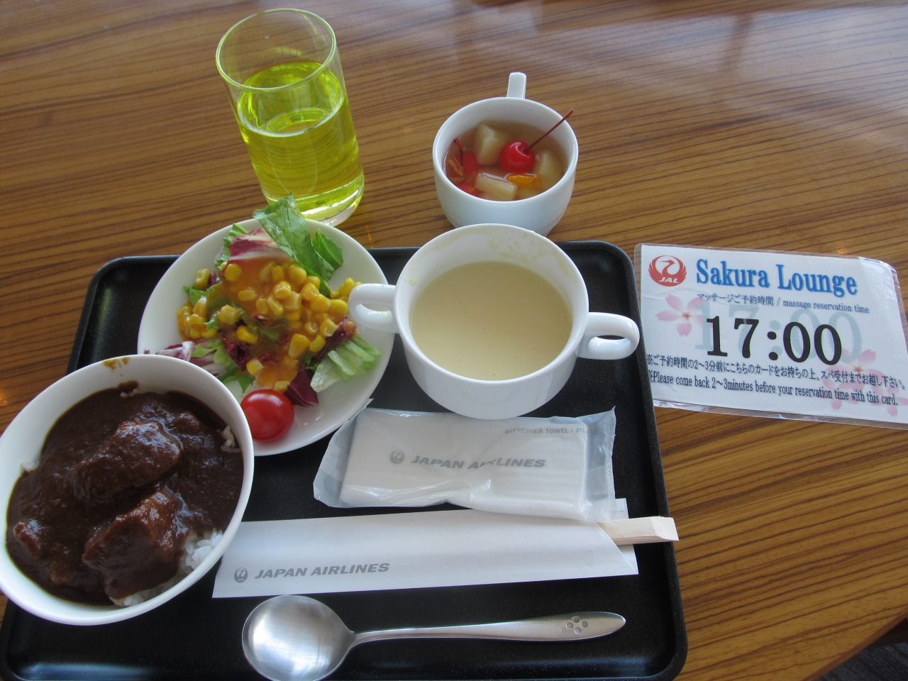 続きを読むァーストクラス、ダイヤモンド、JGCプレミアラウンジが使用可能なので最初にSAKURAラウンジに入り少しの時間だけ食事で利用しました。