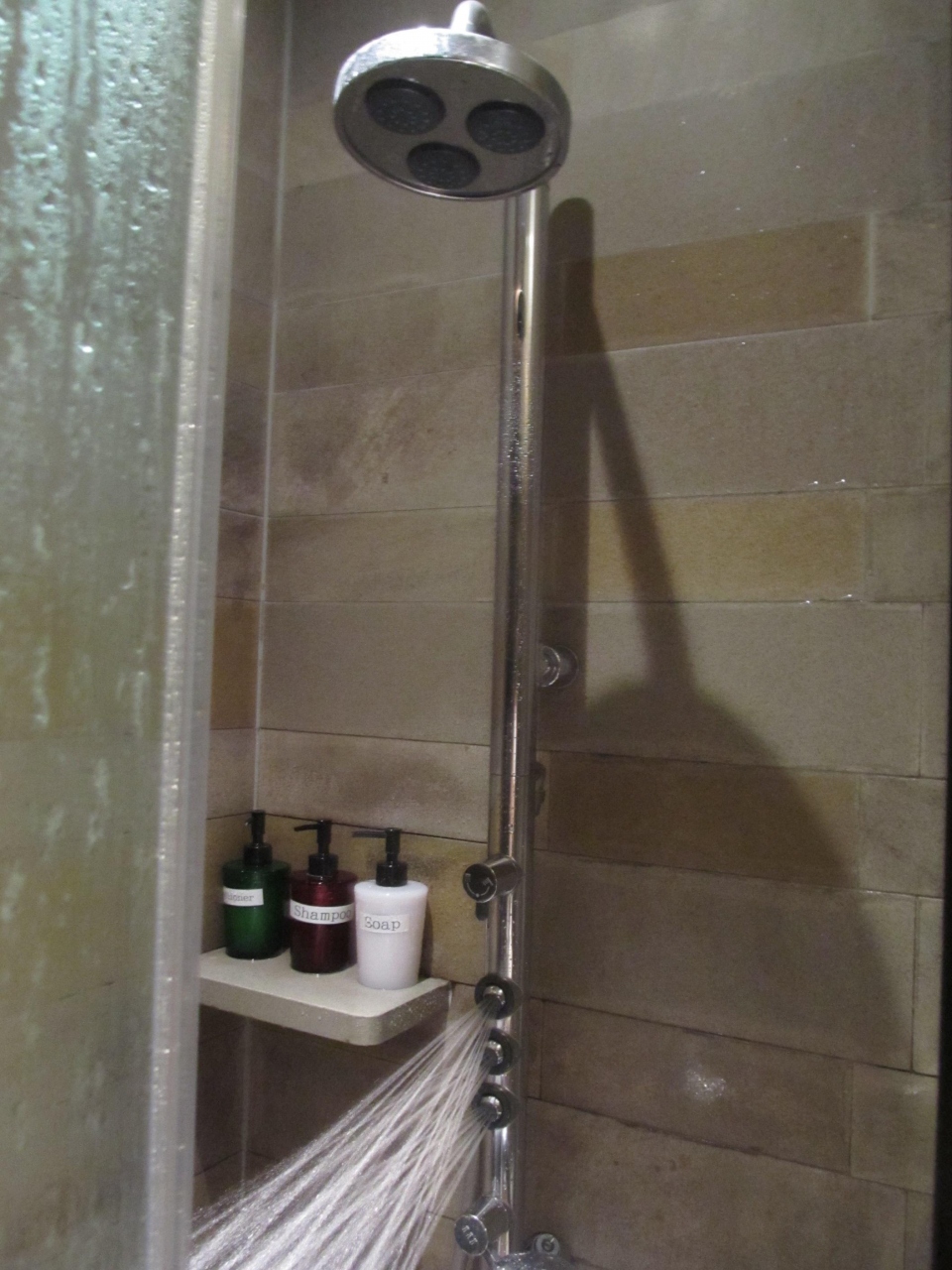 ・シャワー室:清掃がかなり行き届いており,とてもキレイに快適に使用することができました。受付で歯ブラシや髭剃りなどを頂戴することができます。シャワーは手で持つタイプのほか,上から放出されるタイプ,胸の辺りの高さから放出されるタイプの3パターンがありました(手で持つタイプを使用すると他2種類は使用できません)。