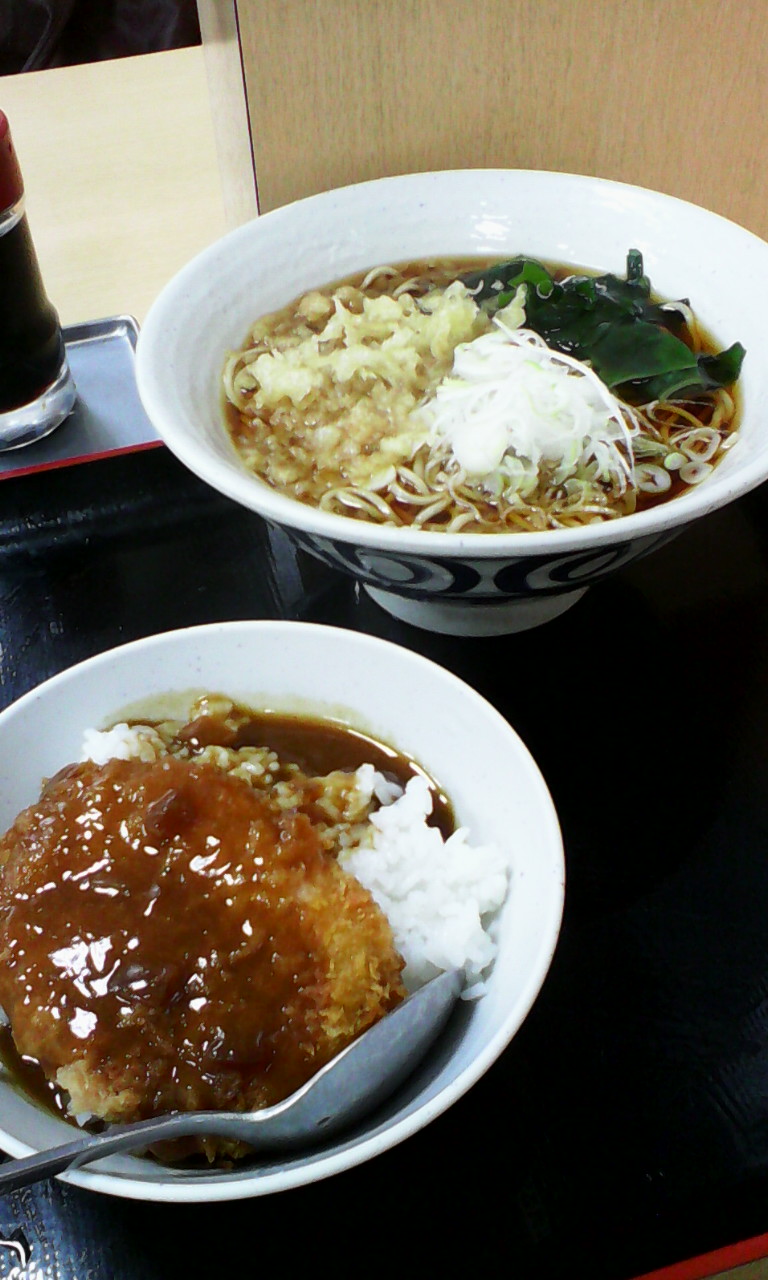 「わかめたぬきそばとコロッケカレー丼」。カレー不足で不満足…