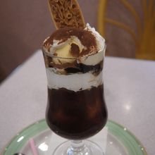 上はパフェっぽく、下はドリンクになっている。したがって、ストローでアイスコーヒーを先に飲むと、上のジェラート等が沈んでいく。