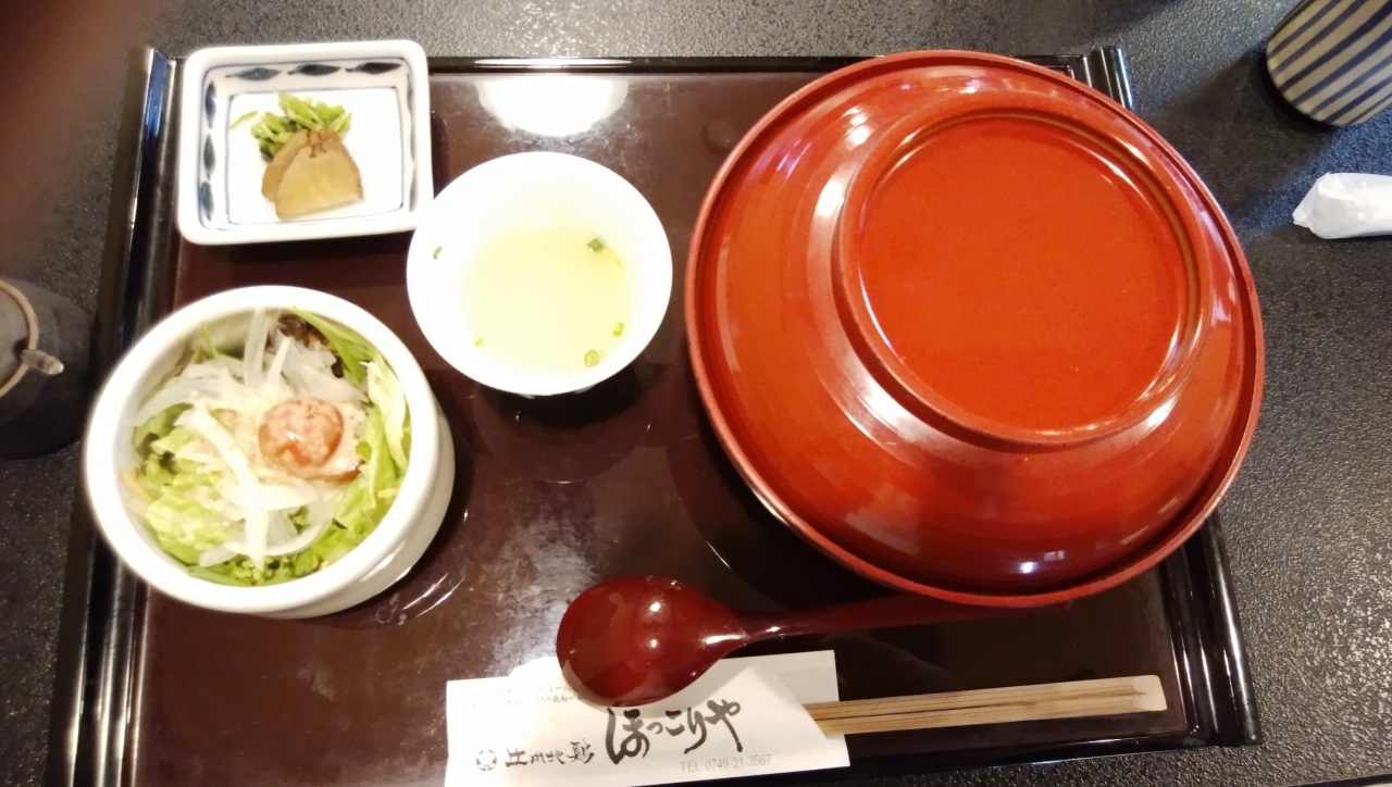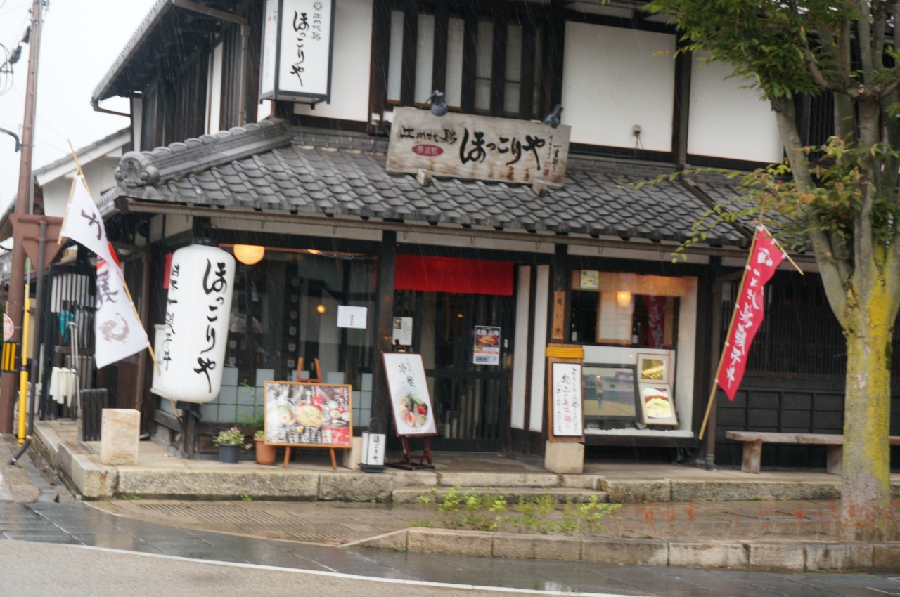 彦根城へ行く前に腹ごしらえ。パス停留所の真向かいにある「ほっこりや」へGO!!