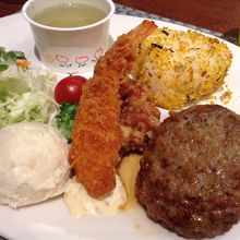 子供のお子さまプレートもハンバーグ、エビフライ、唐揚げと盛り沢山で、子供も美味しいと食べていました。お子さまプレートって、他のお店では野菜が少なめのお店も多いのですが、ここは、野菜がたくさんのっていて、栄養バランス的にも良かったです☆