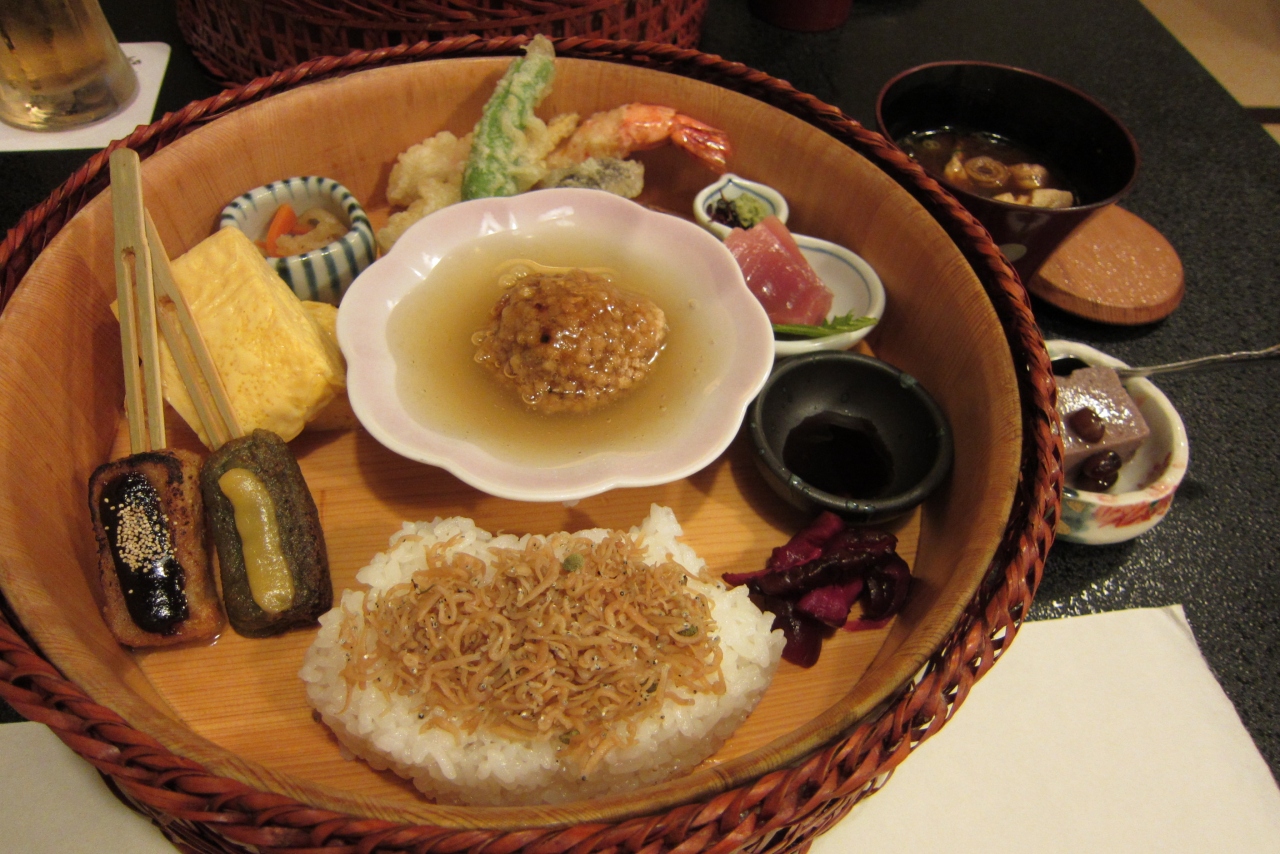 お料理は籠に入ったお弁当(ランチメニューのなかでは一番安いものでした)をお願いしたのですが、おもったよりボリュームもあって美味しかったです。