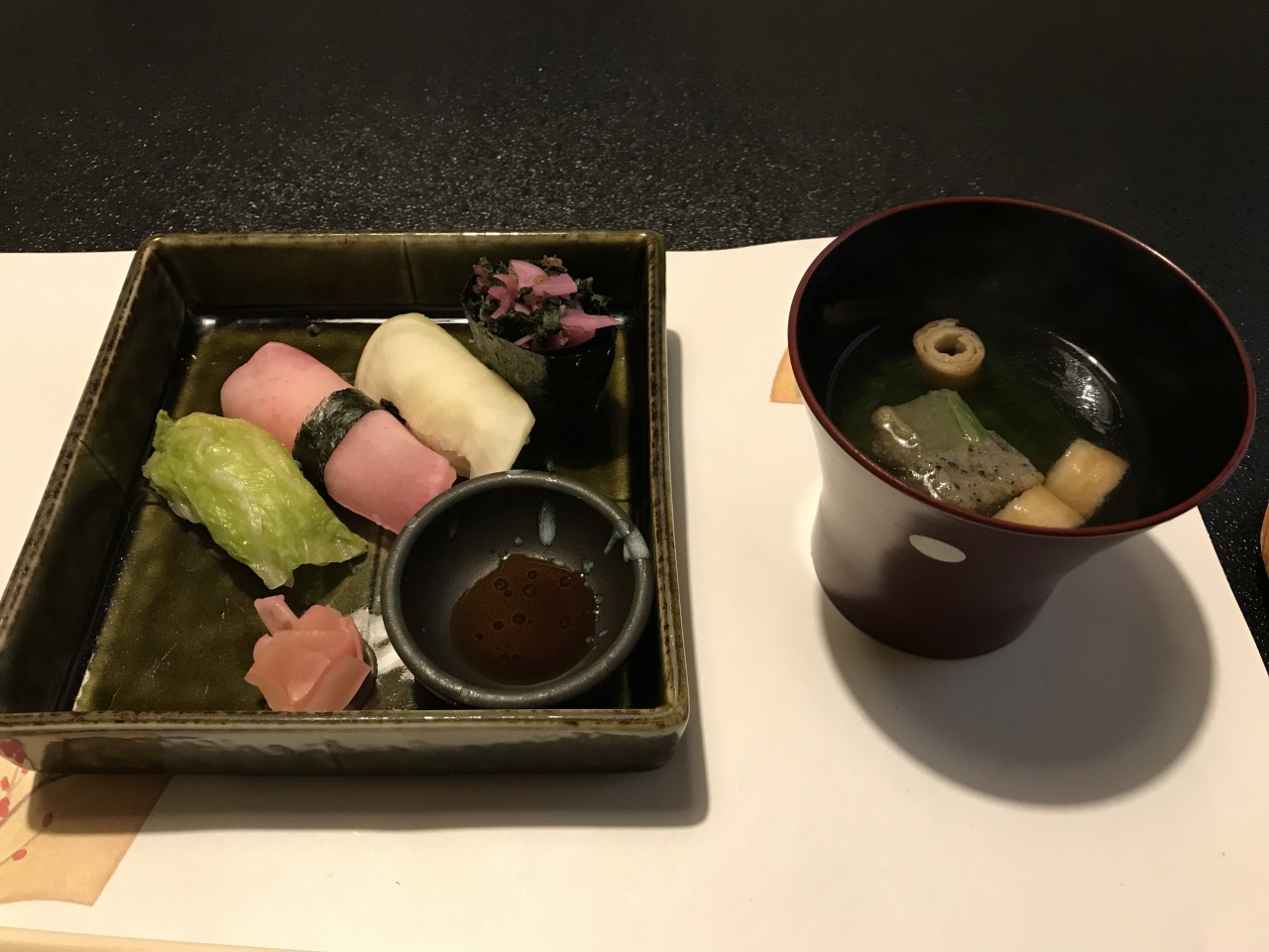 京漬物寿司と一緒にでた、お麩のにゅうめんが美味しかったです。