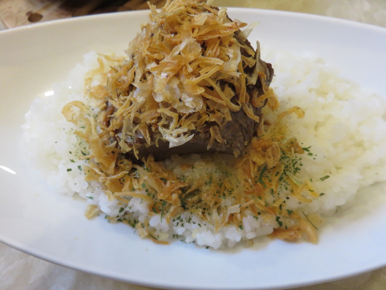 牛バラはほろほろ崩れる柔らかさ、その上にフライドオニオンのトッピング、とてもボリュームあるのにあっさりしていて、プチ贅沢感味わえます