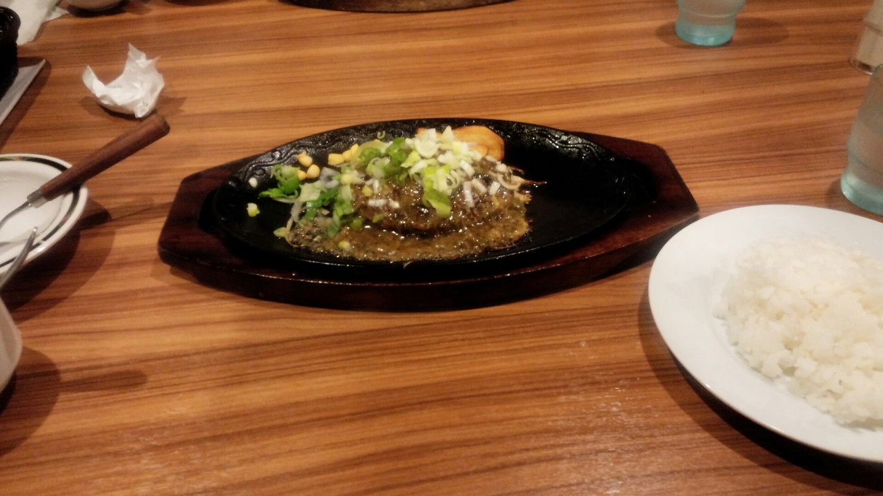 外環状線の横大路の交差点を東に100mほど行ったところにあります。広い駐車場があり入りやすいお店です。関東を中心に全国展開... 続きを読むしている、ステーキとハンバーグがメインのお店で、京都ではこのお店だけです。平日のお昼に入りましたが、早めに入ったので、広い店内はお客はまだチラホラ。“ハンバーグ150g1344円”をオーダー、これに、サラダ、カレー、スープのバイキングがついています。ハンバーグはオリジナル、デミ、オニオン、ガーリック、照焼き、塩麹ポン酢の六種類から選べたので、オニオンでお願い。ハンバーグが出来るまで、サラダなどをとりに行く。サラダはキャベツ・胡瓜・プチトマト・オニオン・コーン・オレンジ・ライチなどでごく普通。スープは若布スープ。カレーはビーフで、肉も野菜もゴロゴロ、甘めでフルーティ。主役のハンバーグは、国産牛らしく結構ジューシーでオニオニソースの風味も良く、美味しくいただけた。ドリンクバーをつければ、プラス210円でお昼としては結構な値段になるが、アイスクリームバイキング(別料金)などもあるし、子供づれで楽しめる店だと思います。