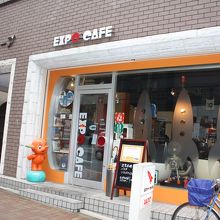 大阪・天満橋のビジネス街の中、北大江公園近くの静かな場所にオレンジを基調としたカフェがある。内装は「宇宙船をイメージした近未来風」とのこと。店の中央にドーム型のショーケースが設置されており、「太陽の塔」グッズなどが展示されている。万博グッズは万博公園の展示会、吹田市の万博記念展示会などにもたくさん貸し出すほどあるそうでドームの中身は時々入れ替えるそうだ。