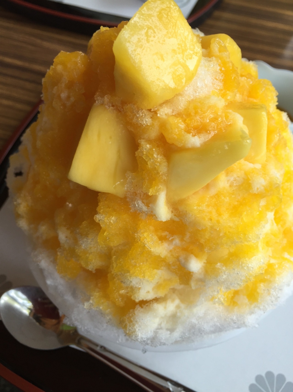 こどもたちは「マンゴーかき氷」840円と「いちご」767円