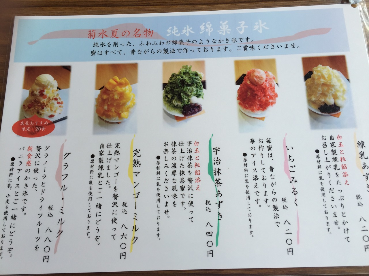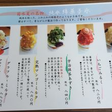 普通のあんみつとかのメニューと1枚ものかき氷メニューがあります。