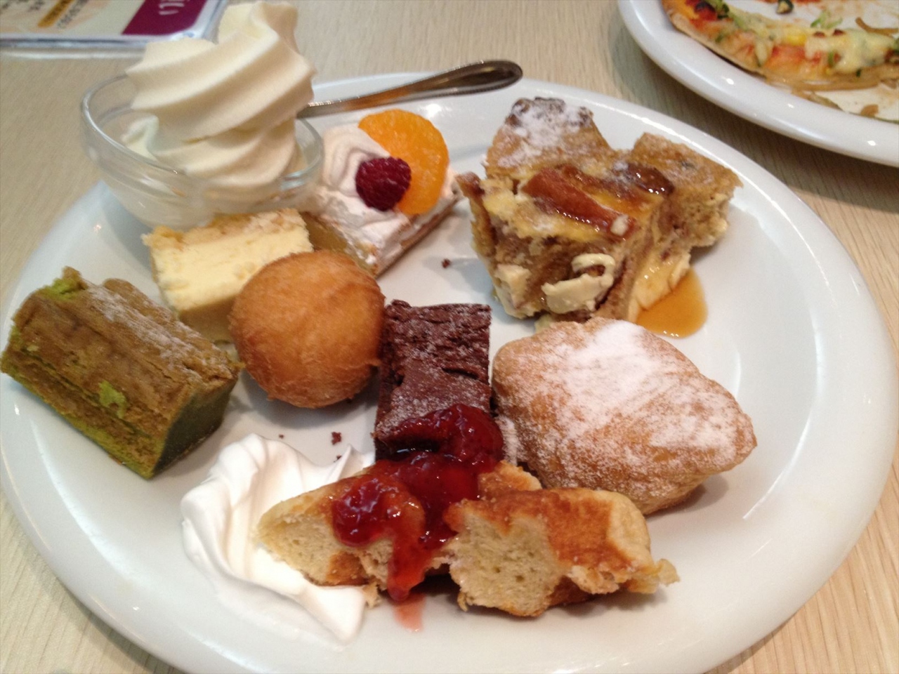 デザートの盛り合せですね。ワッフルやシュークリーム等々、様々なものが用意されています。特に、アイスコーヒにソフトクリームを乗せてコーヒフロートにしてみてください