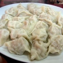 手作りの水餃子はひと口サイズで、皮がモチモチ。