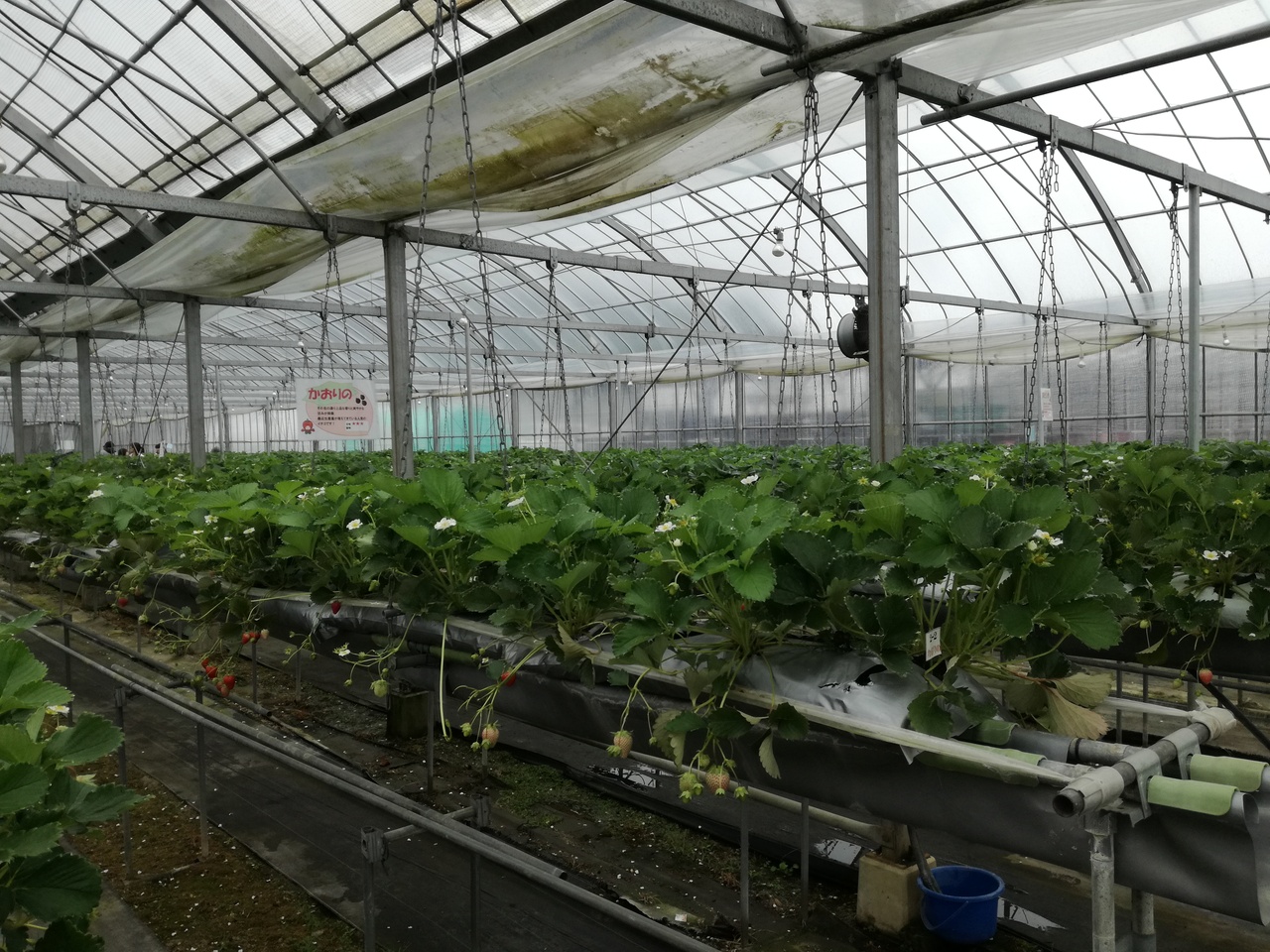 ビニールハウスのように屋根がついているので雨の日でも大丈夫。