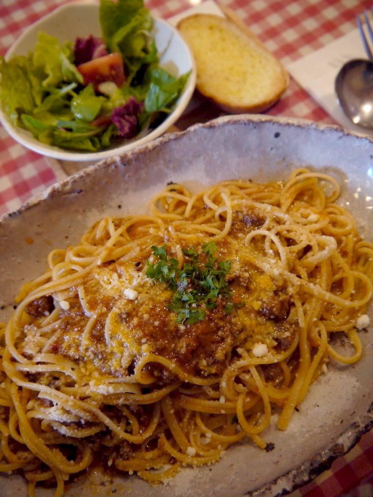粗挽きの挽肉をたっぷり含んだトマトベースのソースに、パスタを絡め、粉チーズをたっぷり塗している。挽肉や粉チーズの量が多いからか、トマトの酸味もまろやかになっている。
