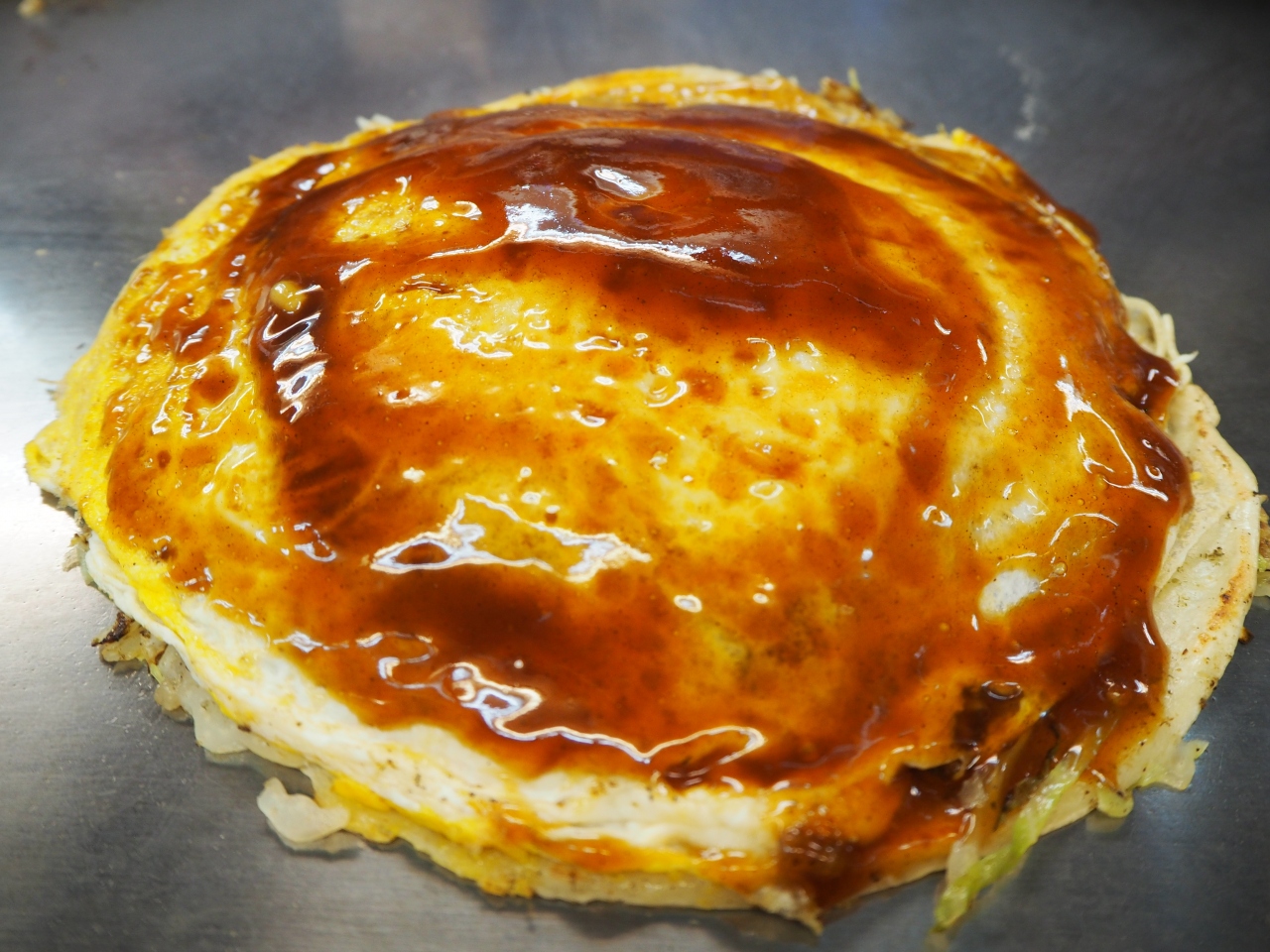 〆はお好み焼きをそば入りとうどん入りをオーダーし、シェアして頂きました。お好み焼きも一枚が大きめでボリュームあり、もちろん美味しい。前日に食べた有名店Mちゃんより一回り大きくお腹が満たされます。