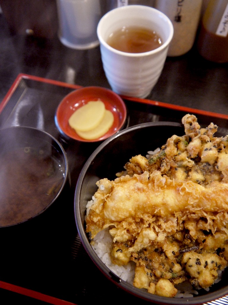トッピングされているのは、豆腐の掻き揚げと、海老という、他店ではあまり見られない天ぷら。