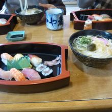 セットメニューもあり、寿司と、ラーメンもしくはうどんという、奇妙なセットメニューも。