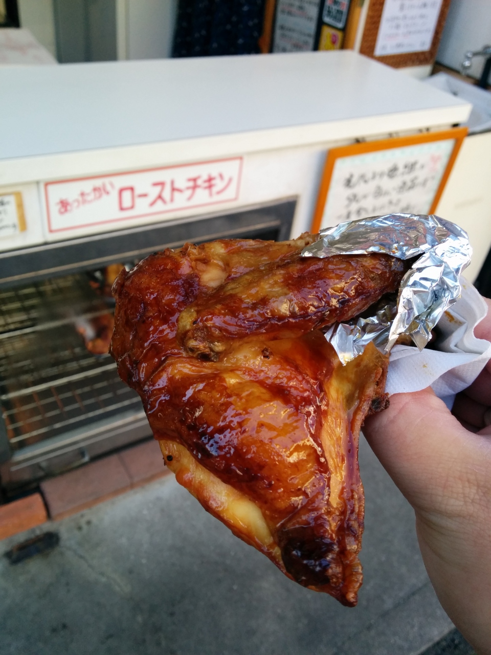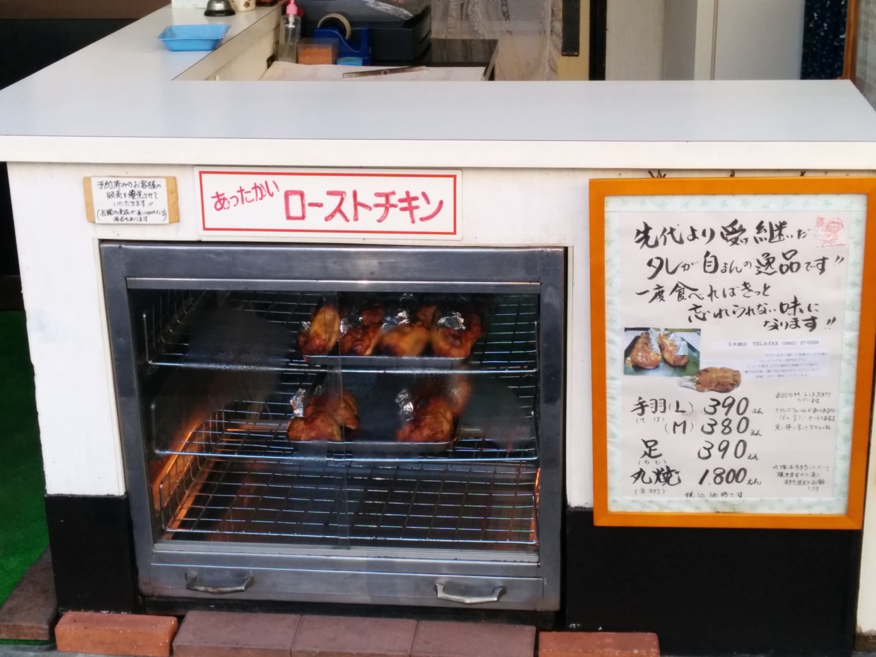 店頭で、鶏を丸ごと串に刺して、ぐるぐる回しながら焼いてる姿ってのは、