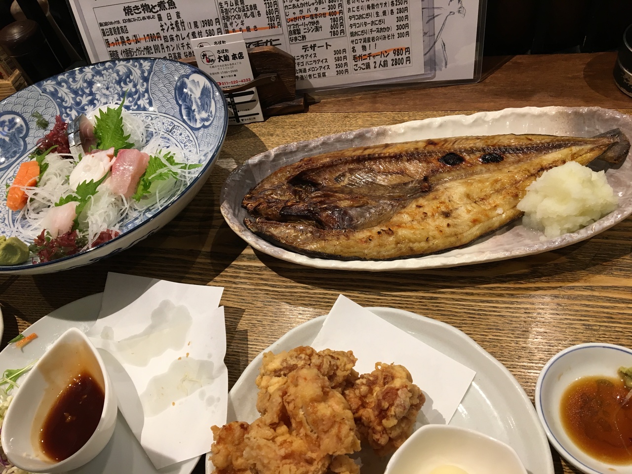 刺身や焼き物がおいしく、ほっけの開きがとても大きく食べがいがありました。人気メニューの博多地鶏つくねを注文しましたが、これも大きい。串に3つ刺さっていたのですが、1口や2口で食べきれないほどの大きさで味付けも良かったです。
