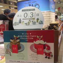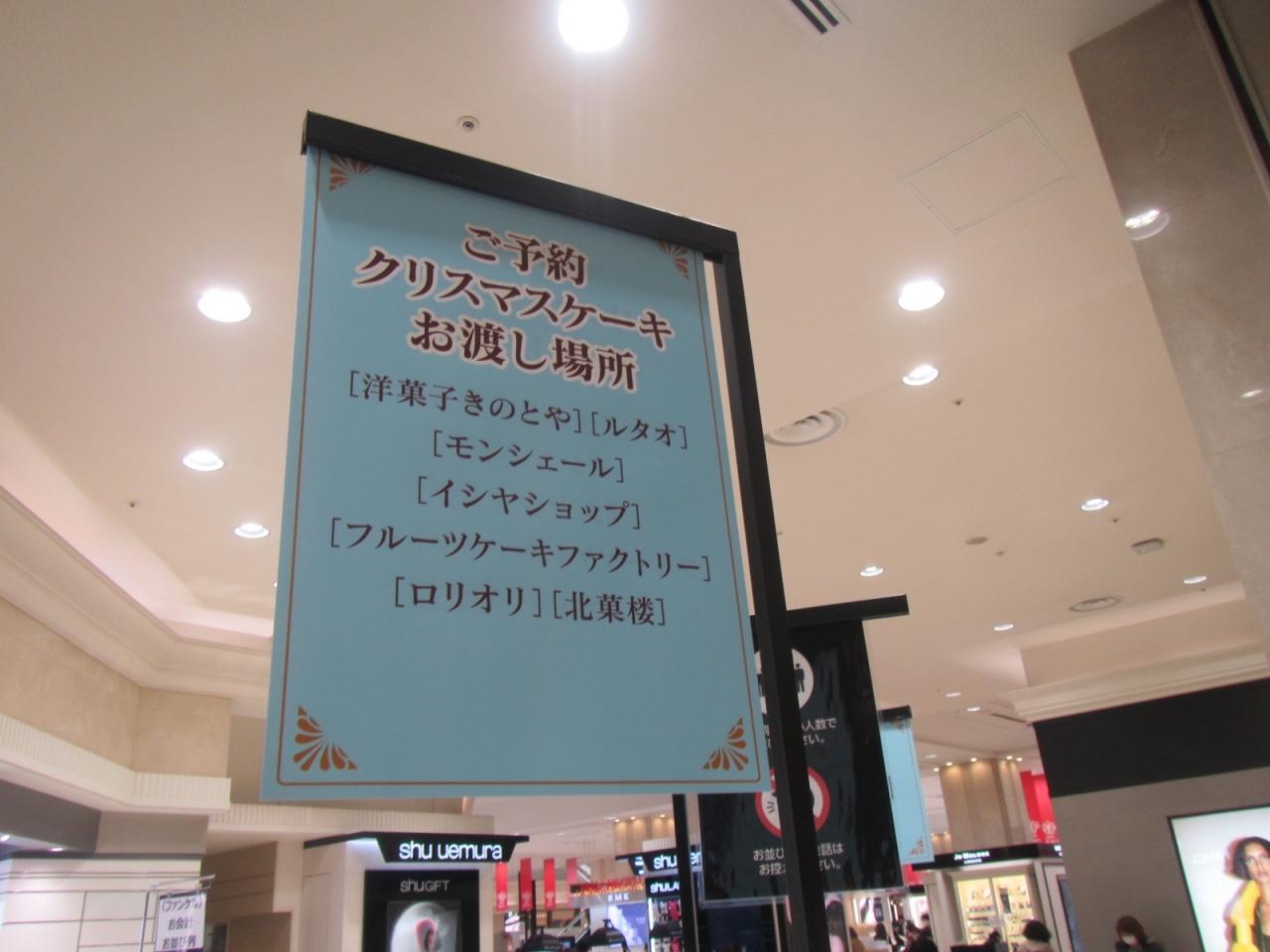 クリスマスシーズンには他の菓子メーカーと同様、各種クリスマスケーキを販売していますが、大丸の店舗では事前予約済のケーキについては、地下1階の店舗ではなく、地上1階の方に特設会場を設け、予約したケーキの引き渡しをしていました。