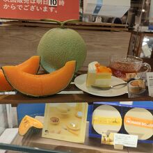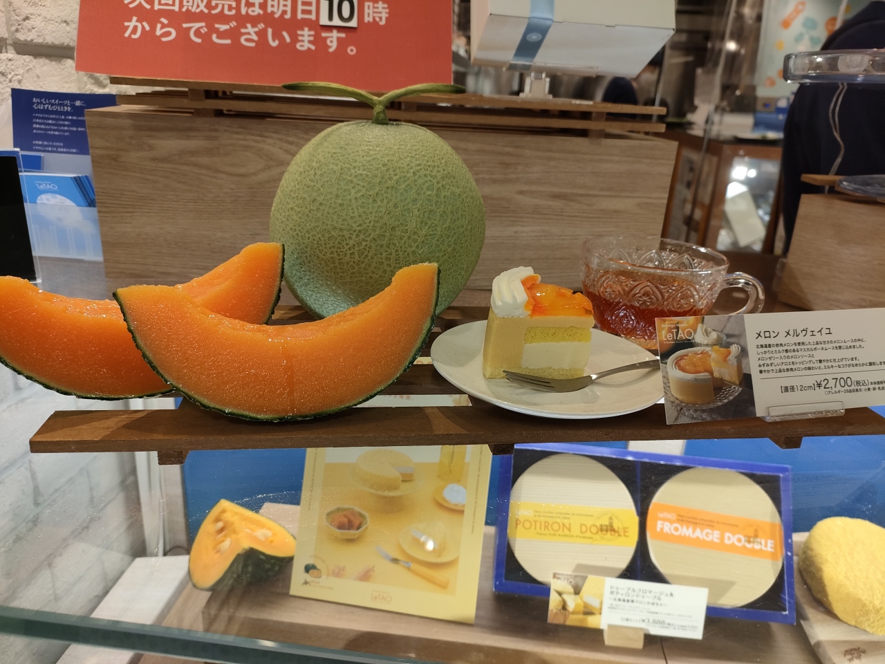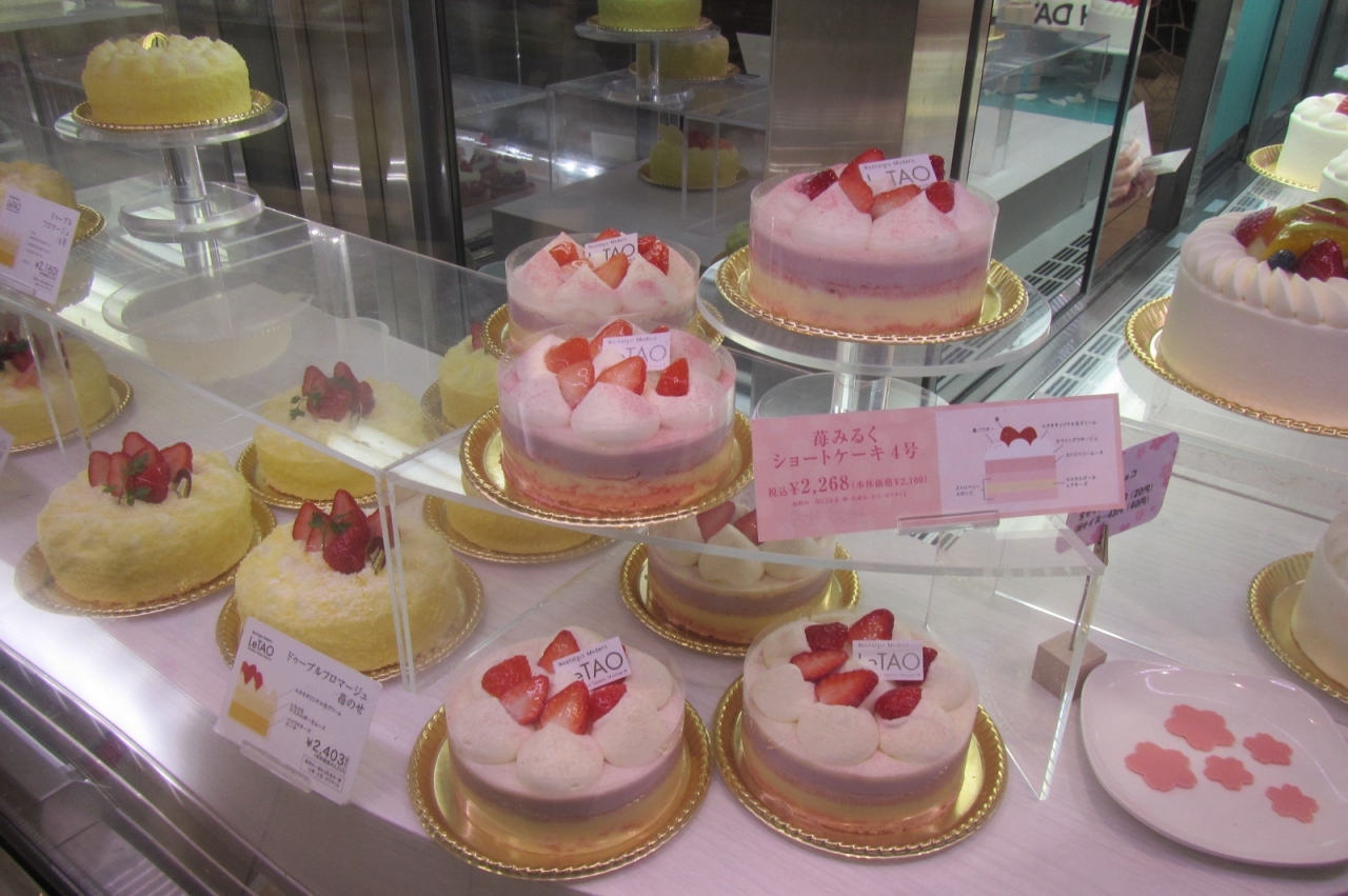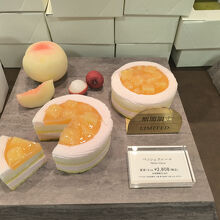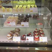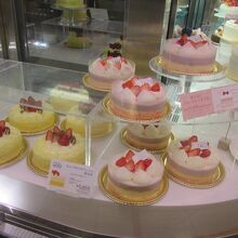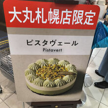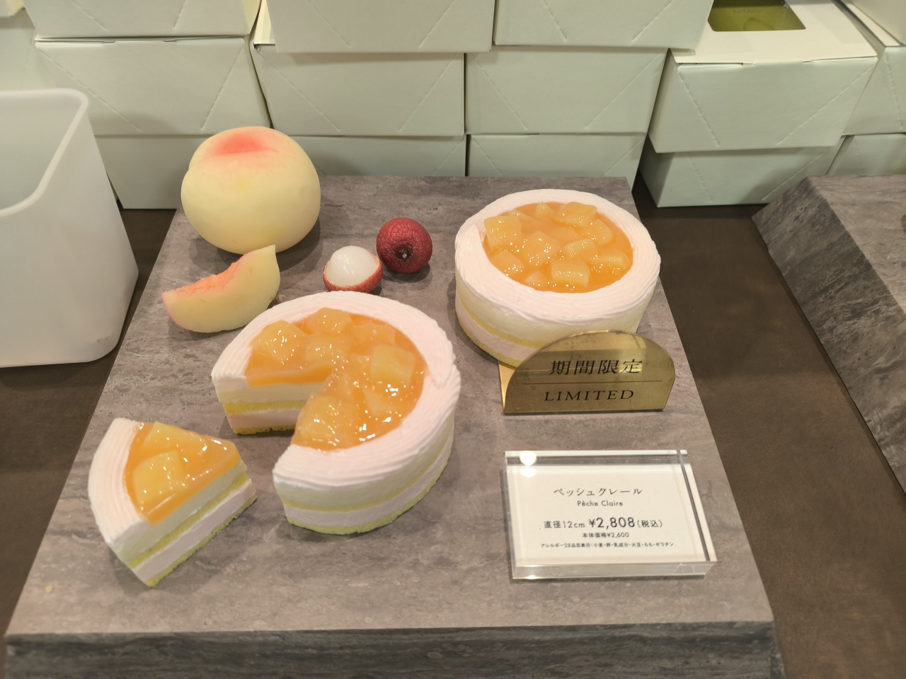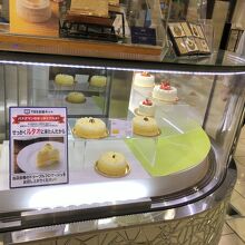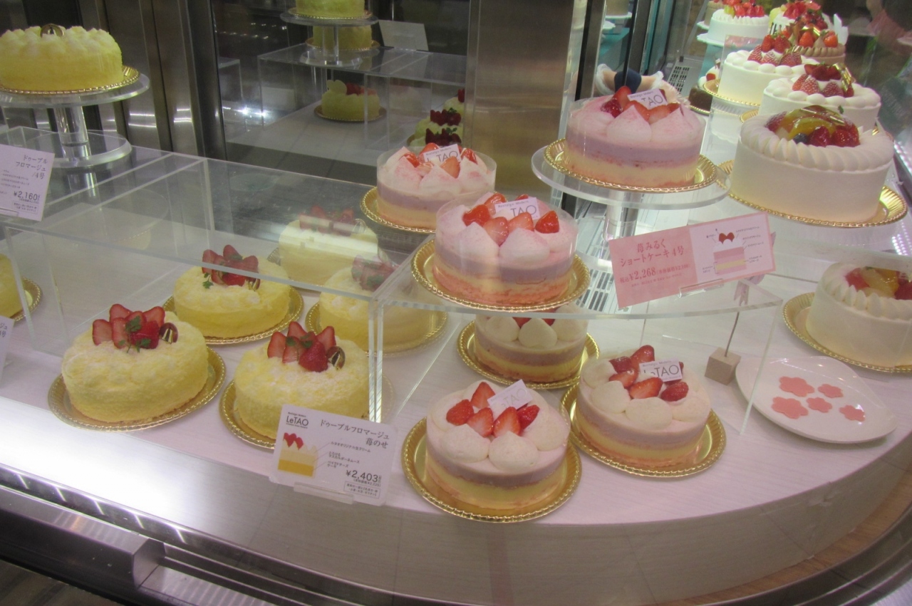 大丸の入口でショーケースの中に美味しそうなケーキ