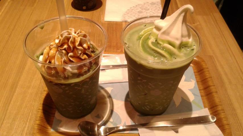 黒蜜抹茶フローズンラテと抹茶クリームラテ