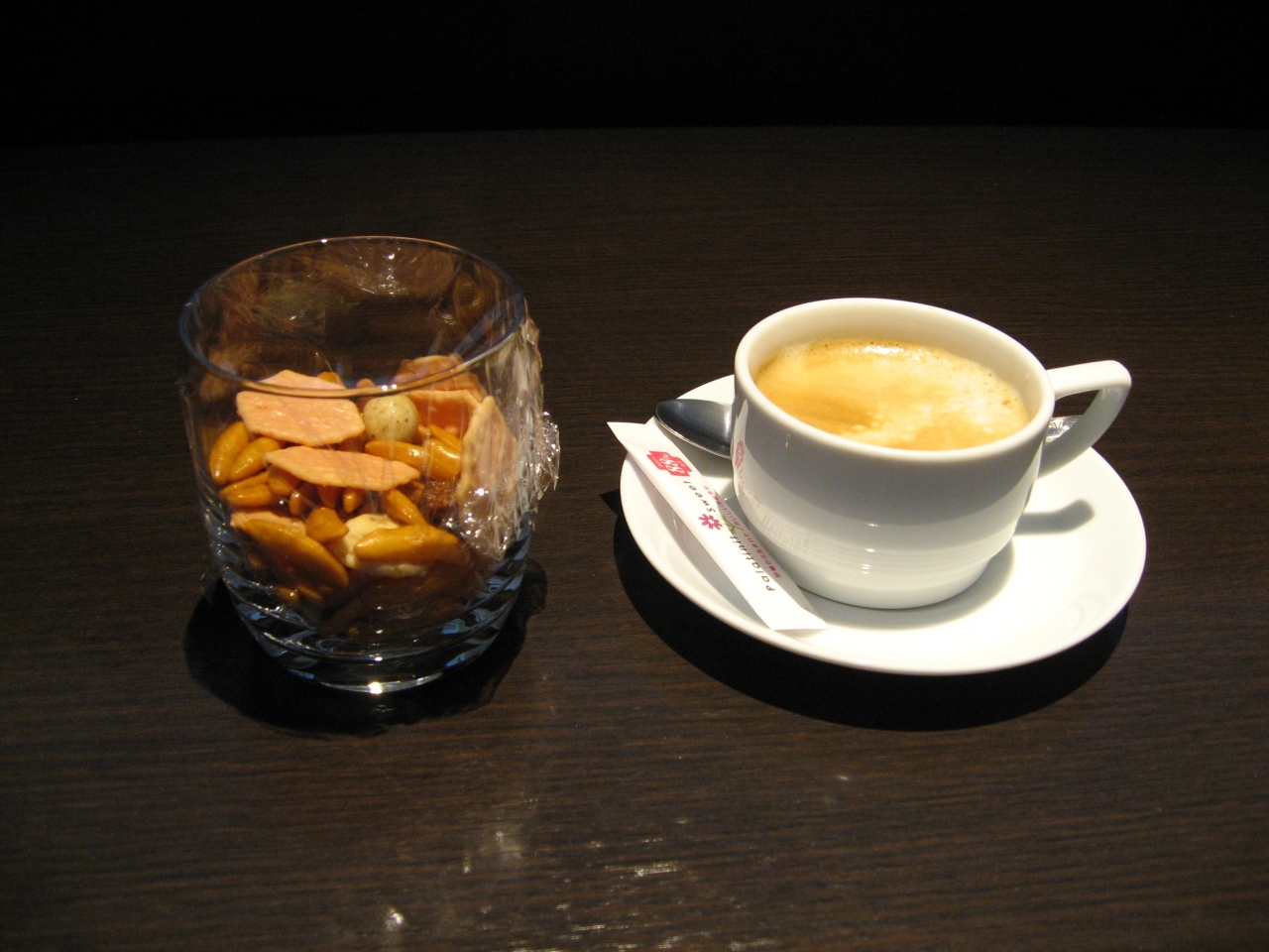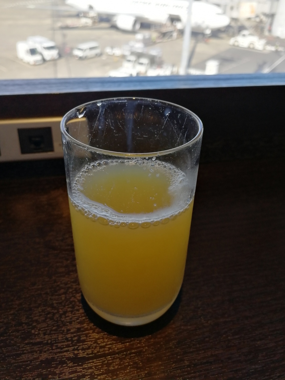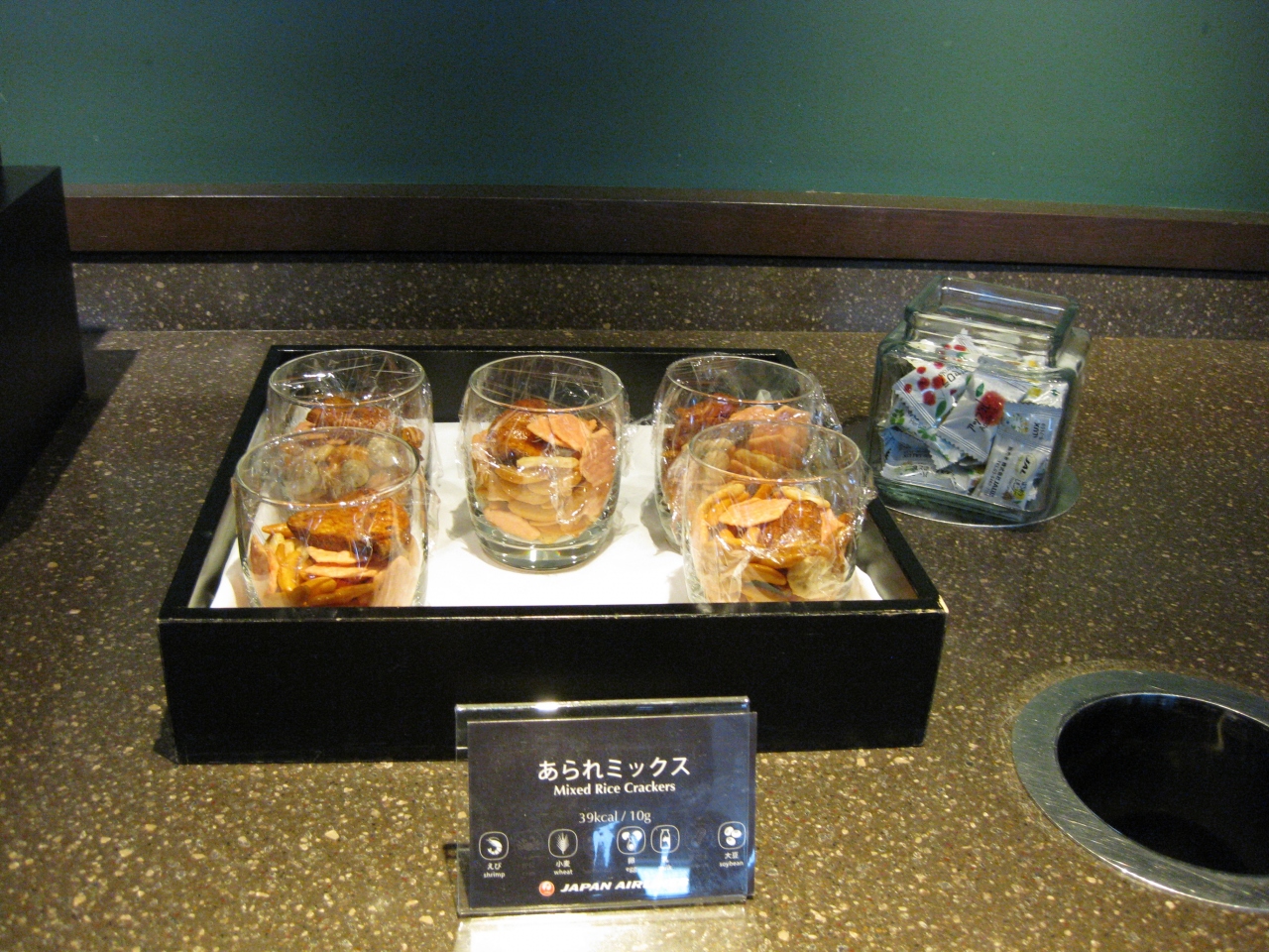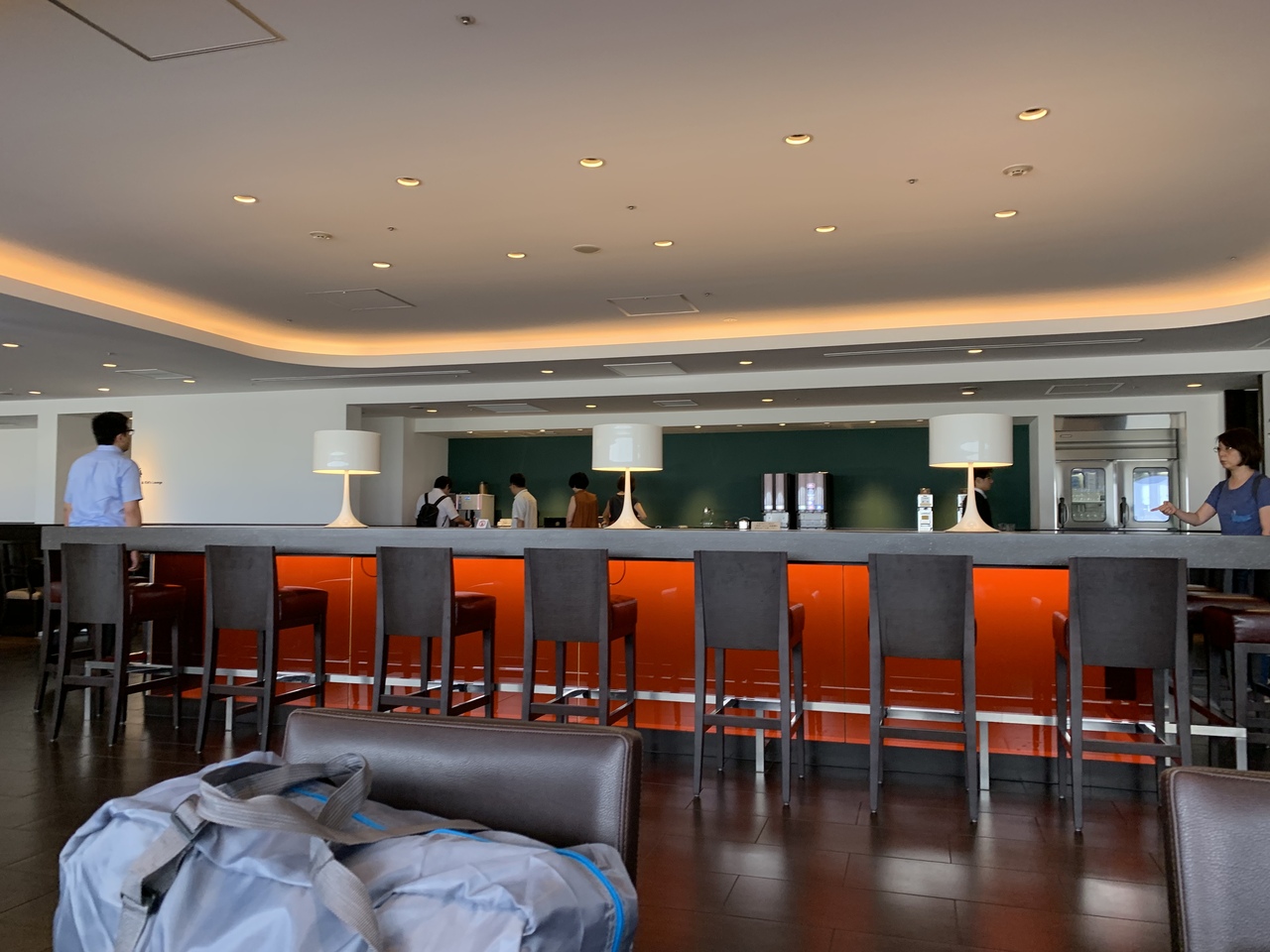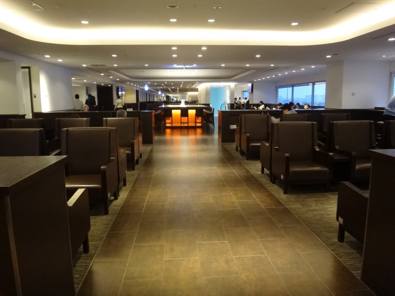ラウンジ内はとても広く、いすがとても... 続きを読む多かったです。 椅子の種類も色々ありました。 ソファー席にはサイドテーブルがついています。 窓側にはカウンター席があり、とても眺めがよいです。 その後ろには、一人掛けで丸テーブルがある席。 高い仕切りのあるプライベート席。 どの席も革貼りで座り心地が良いです。 コンセントも各席についています。 飲み物はソフトドリンクとアルコール。 おつまみのあられもありました。 食べ物はありません。