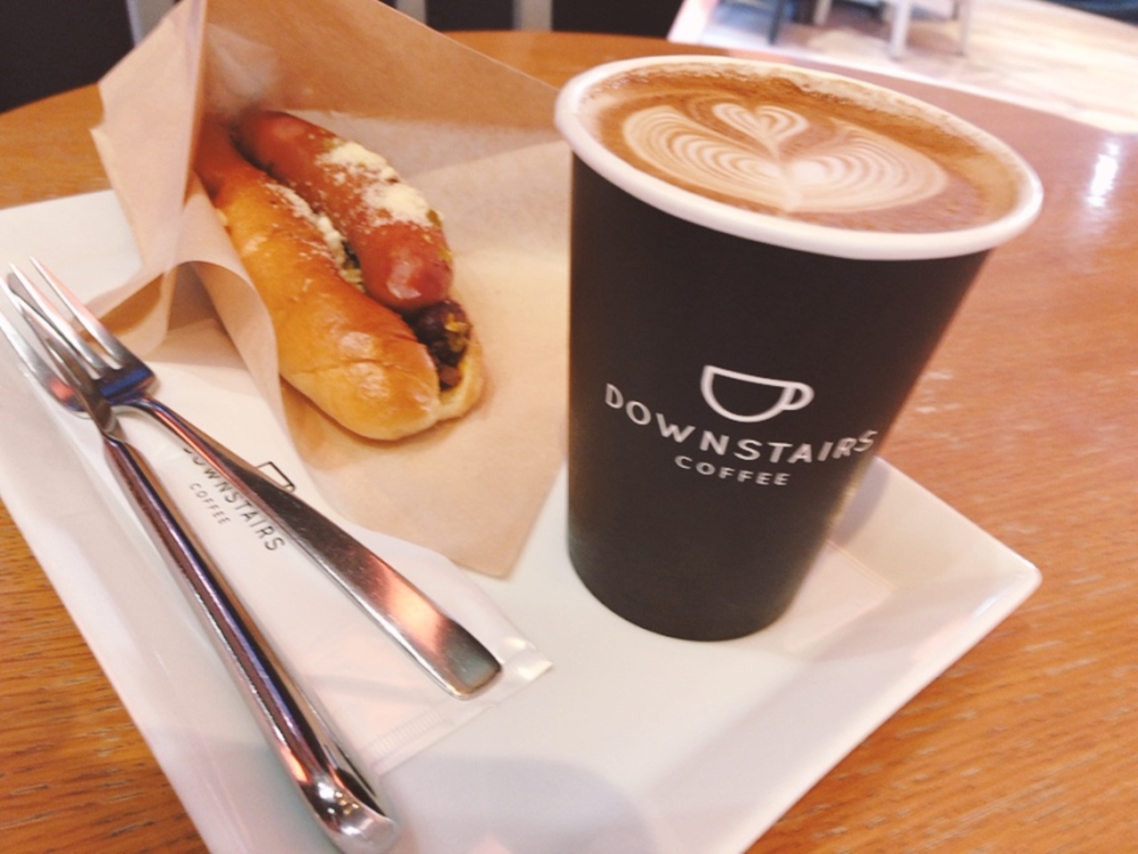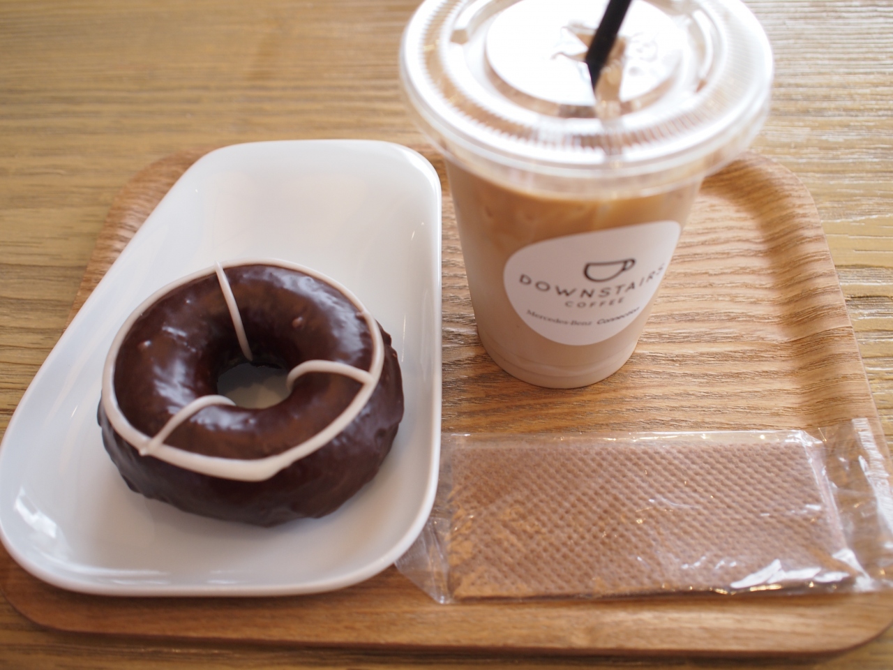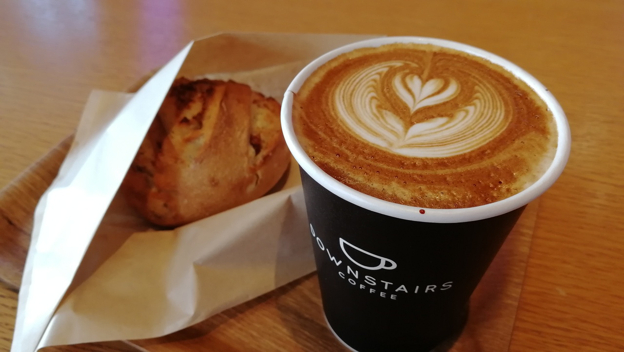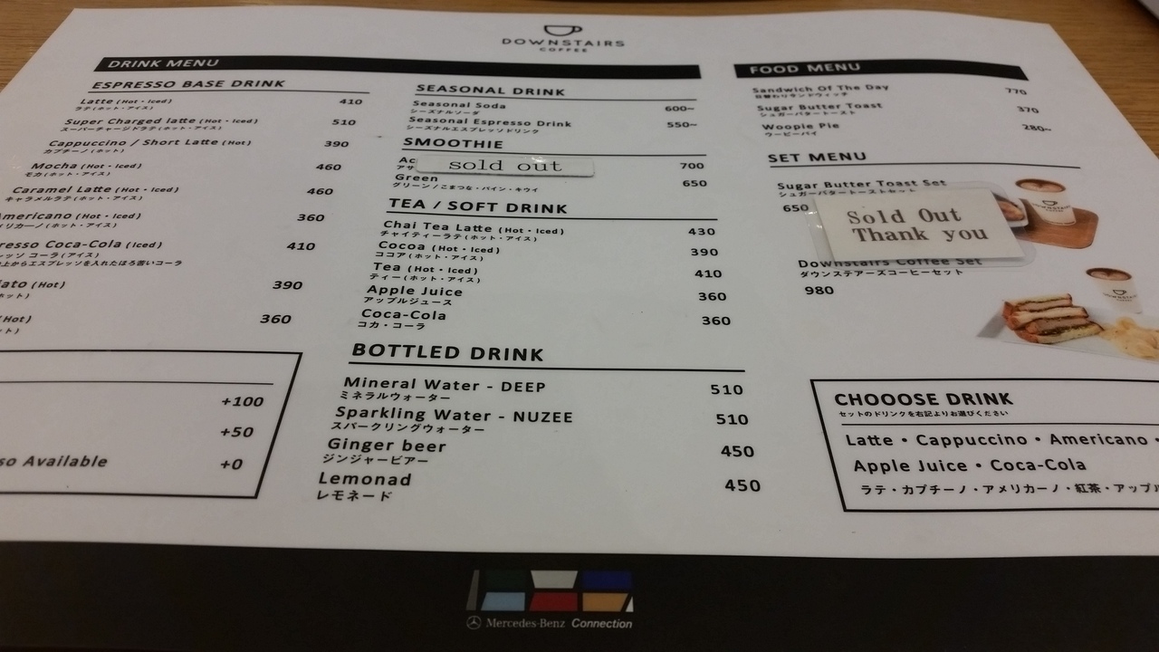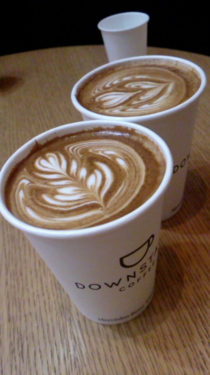 早々に諦め、歩いて5分のメルセデスベンツコネクションにあるダウンステアズコーヒーに行きました。